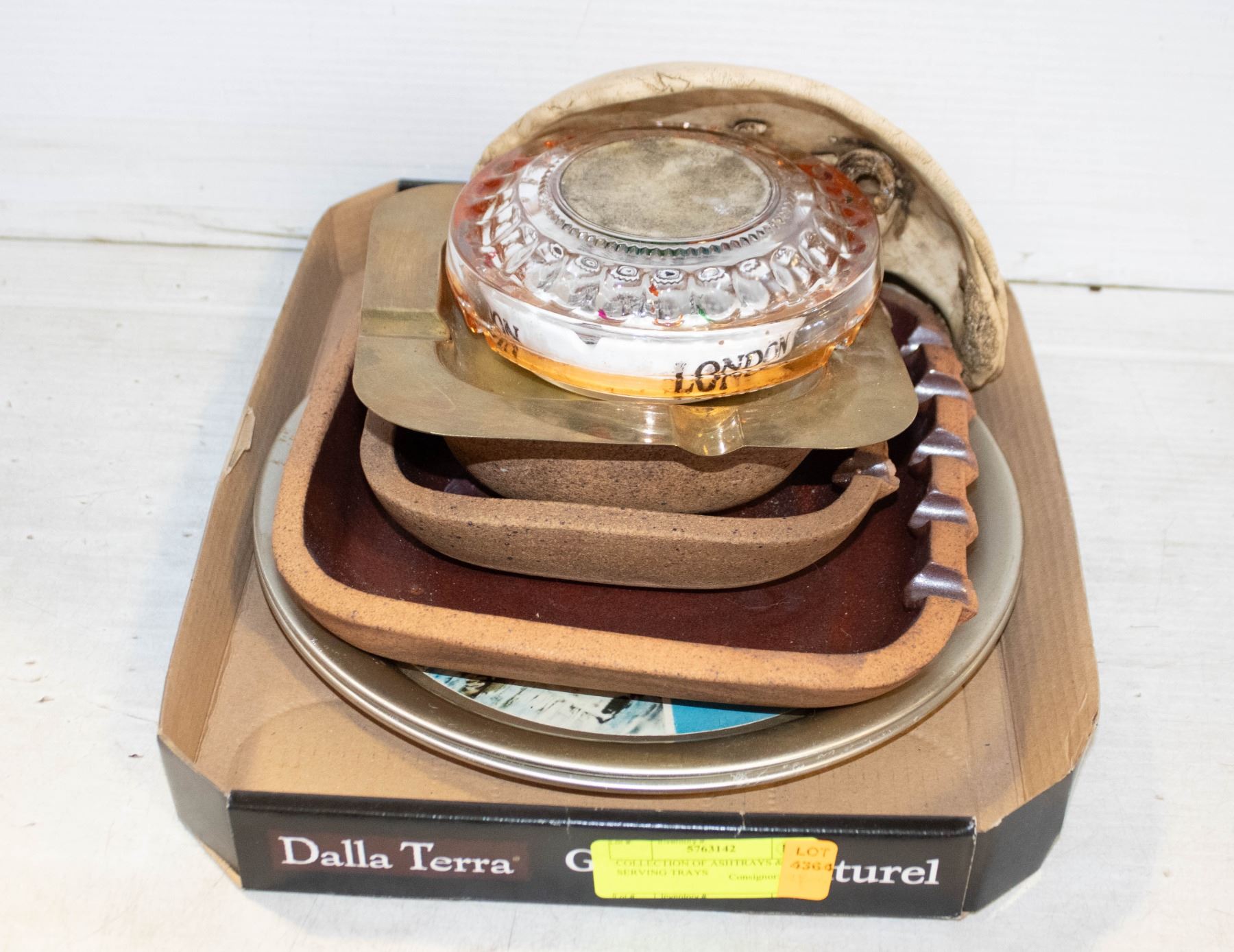 COLLECTION OF ASHTRAYS & SERVING TRAYS