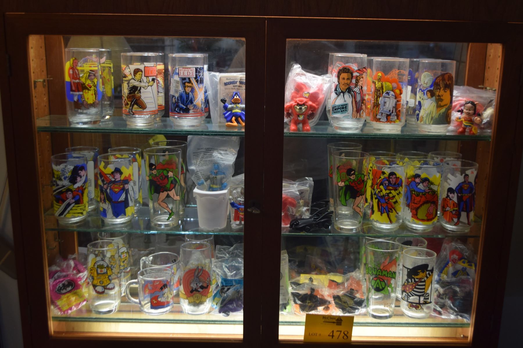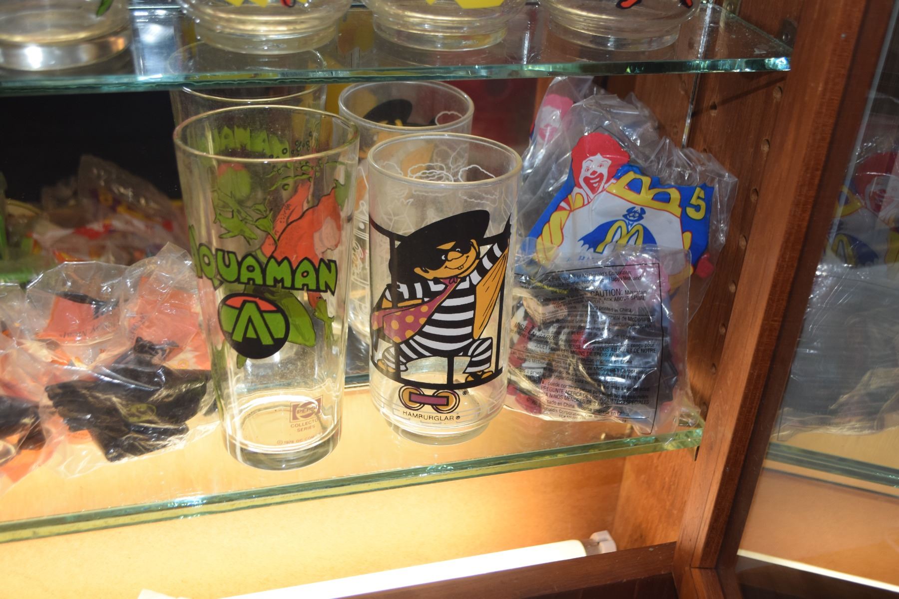 COLLECTION OF ASSORTED COLLECTOR GLASSES (COKE, PEPSI, MCDONALDS, BURGER KING, ETC.) & TOYS