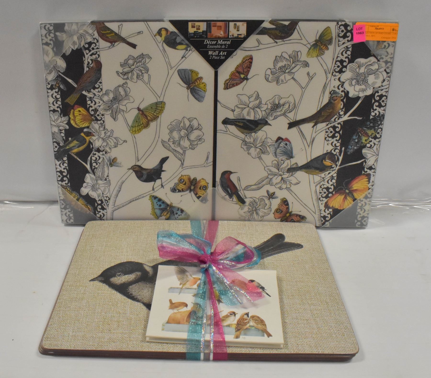 COLLECTION OF BIRD ITEMS - 2 PCS OF WALL ART,