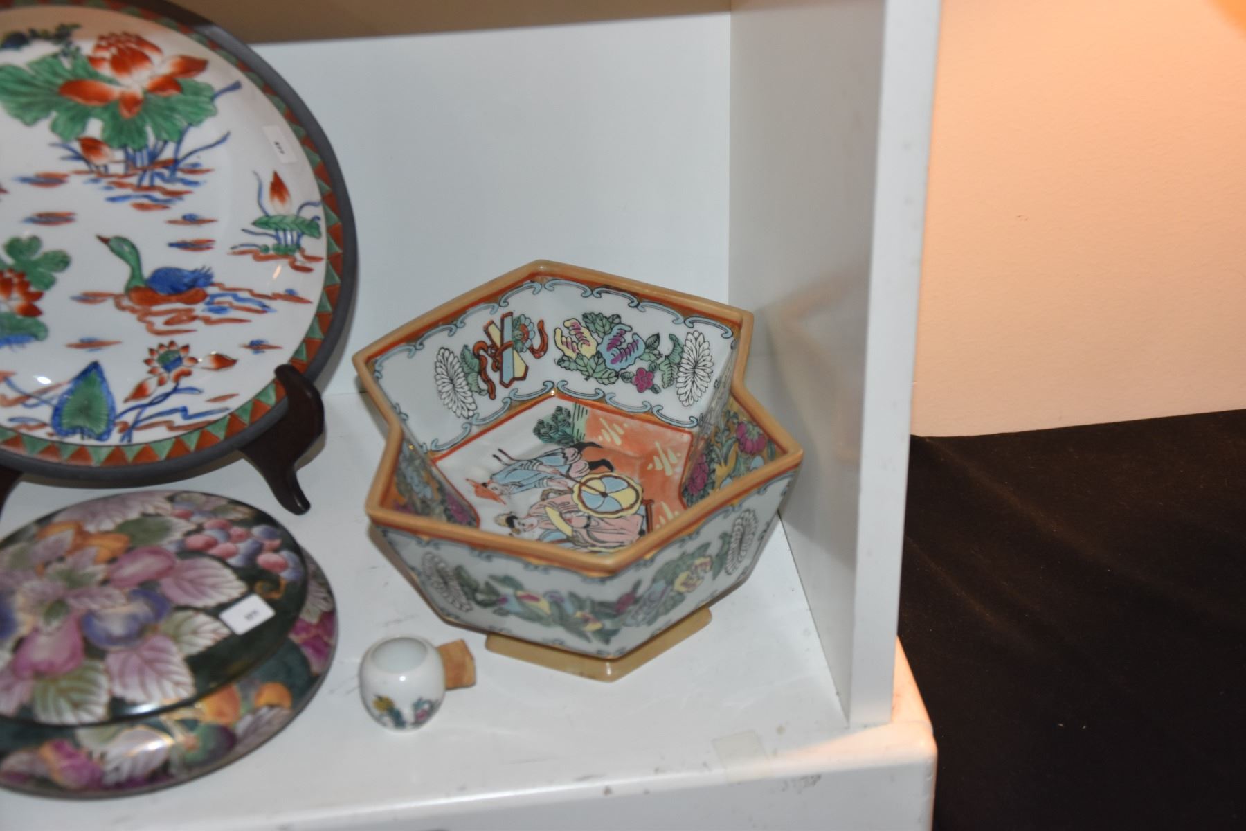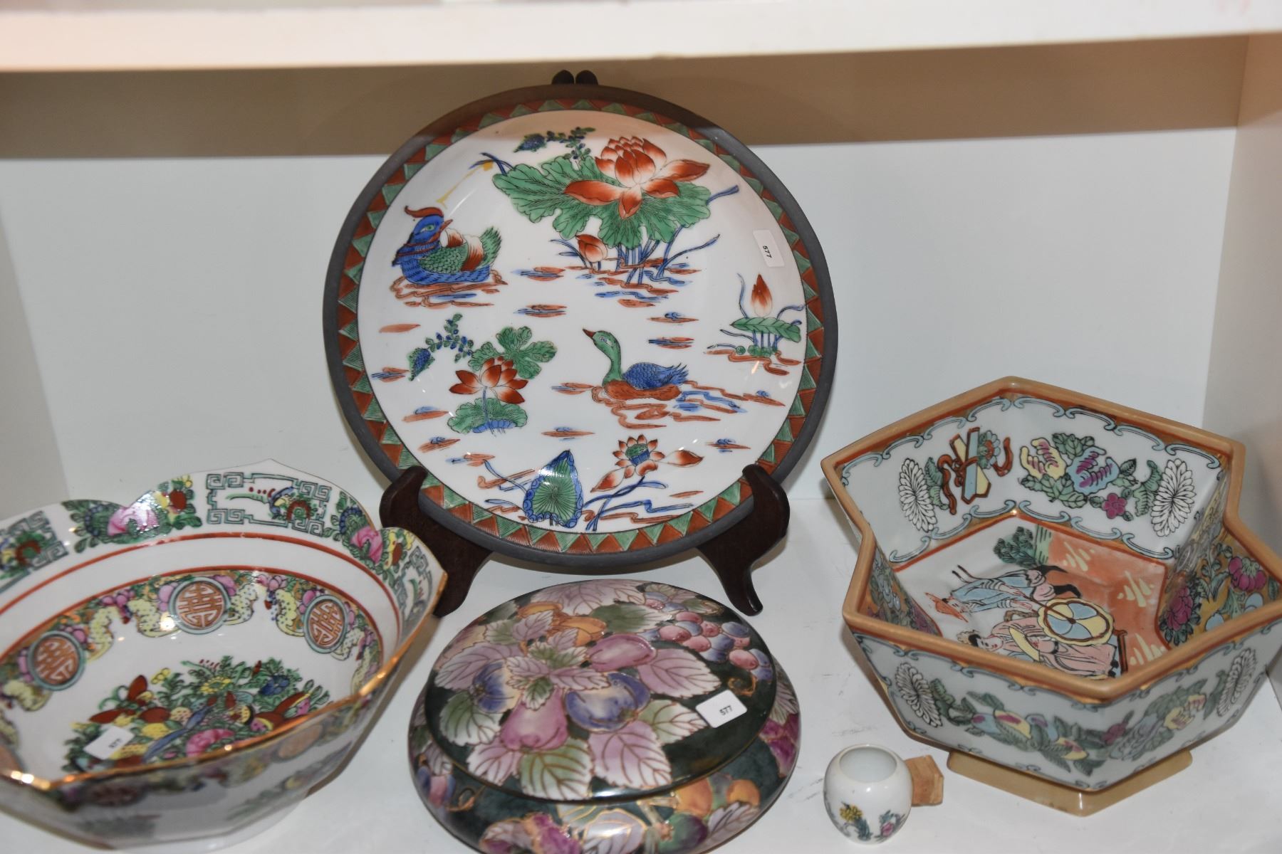 COLLECTION OF BOWLS, PLATE, COVERED BOX & SMALL BIRD FEEDER CUP (5 PCS) (DOES NOT INCLUDE STAND)