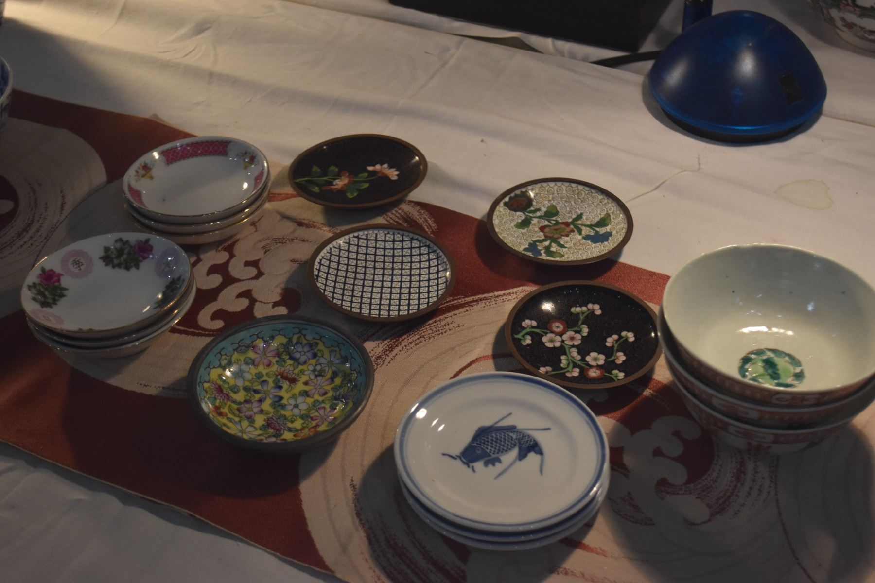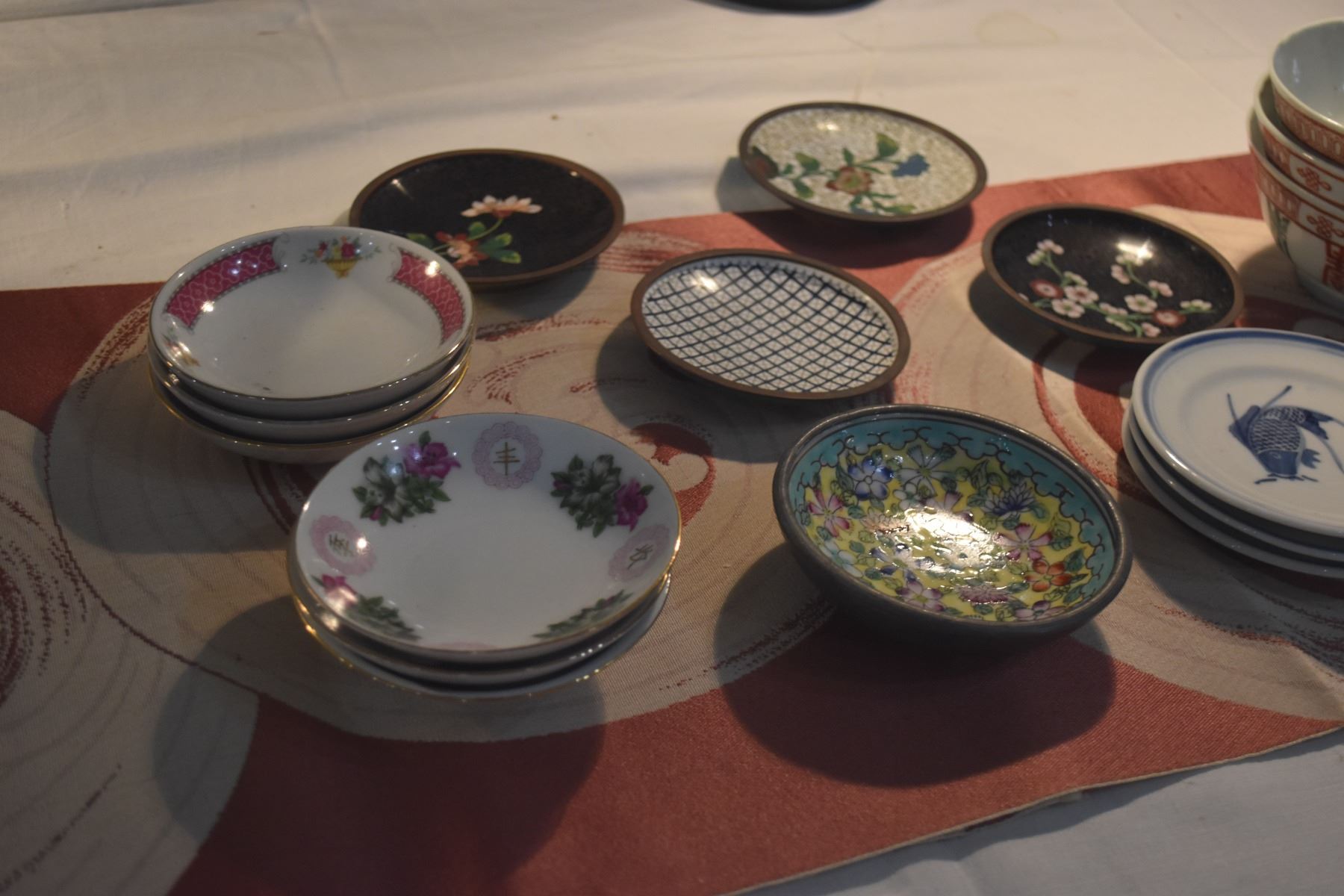 COLLECTION OF CLOISONNE DISHES, RICE BOWLS & ASSORTED DISHES (17 PCS)