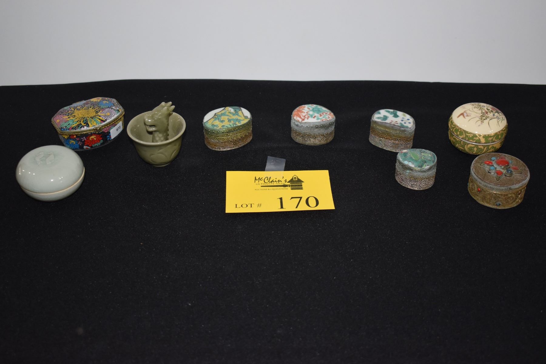 COLLECTION OF COVERED BOXES & CELADON CUP (9 PCS)