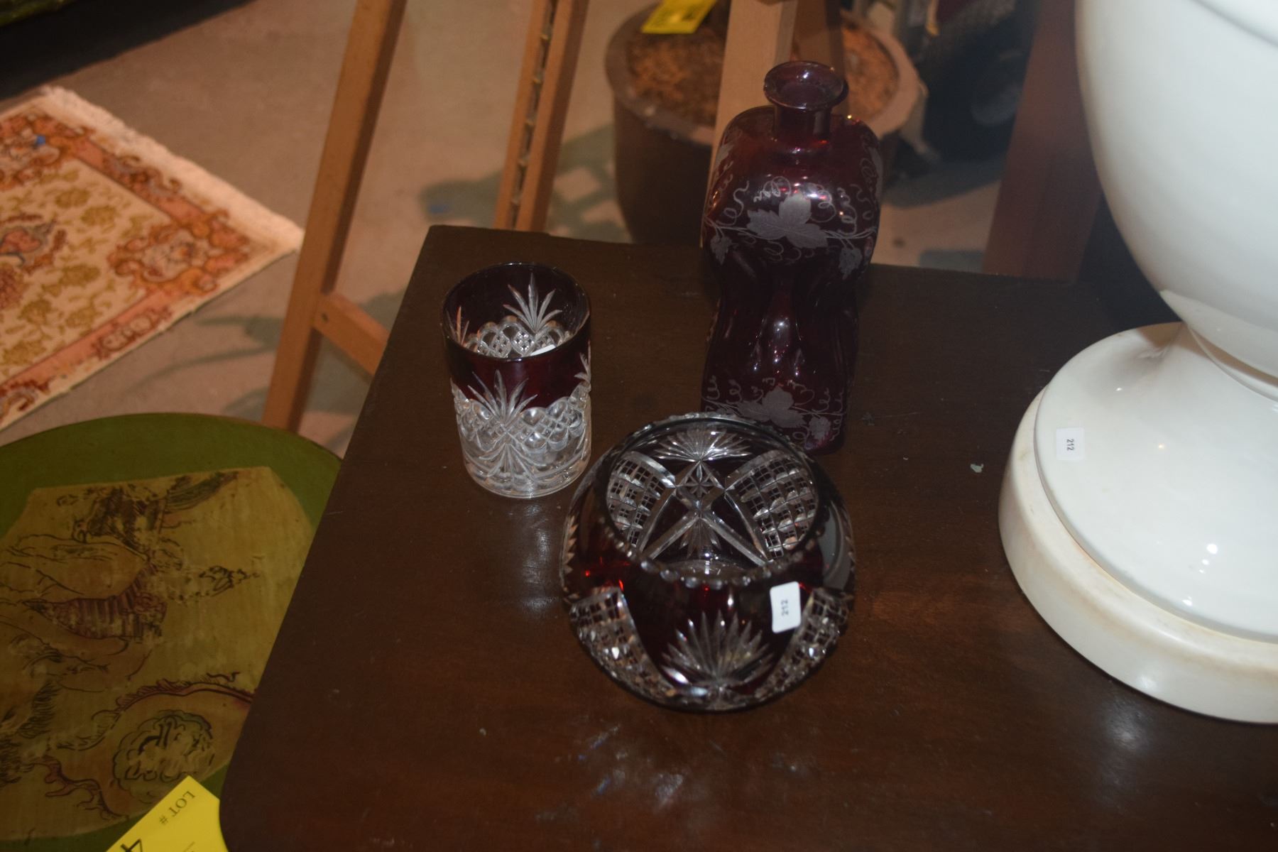 COLLECTION OF CRANBERRY GLASS VASES, PLATE, GLASSES & CUP (7 PCS)