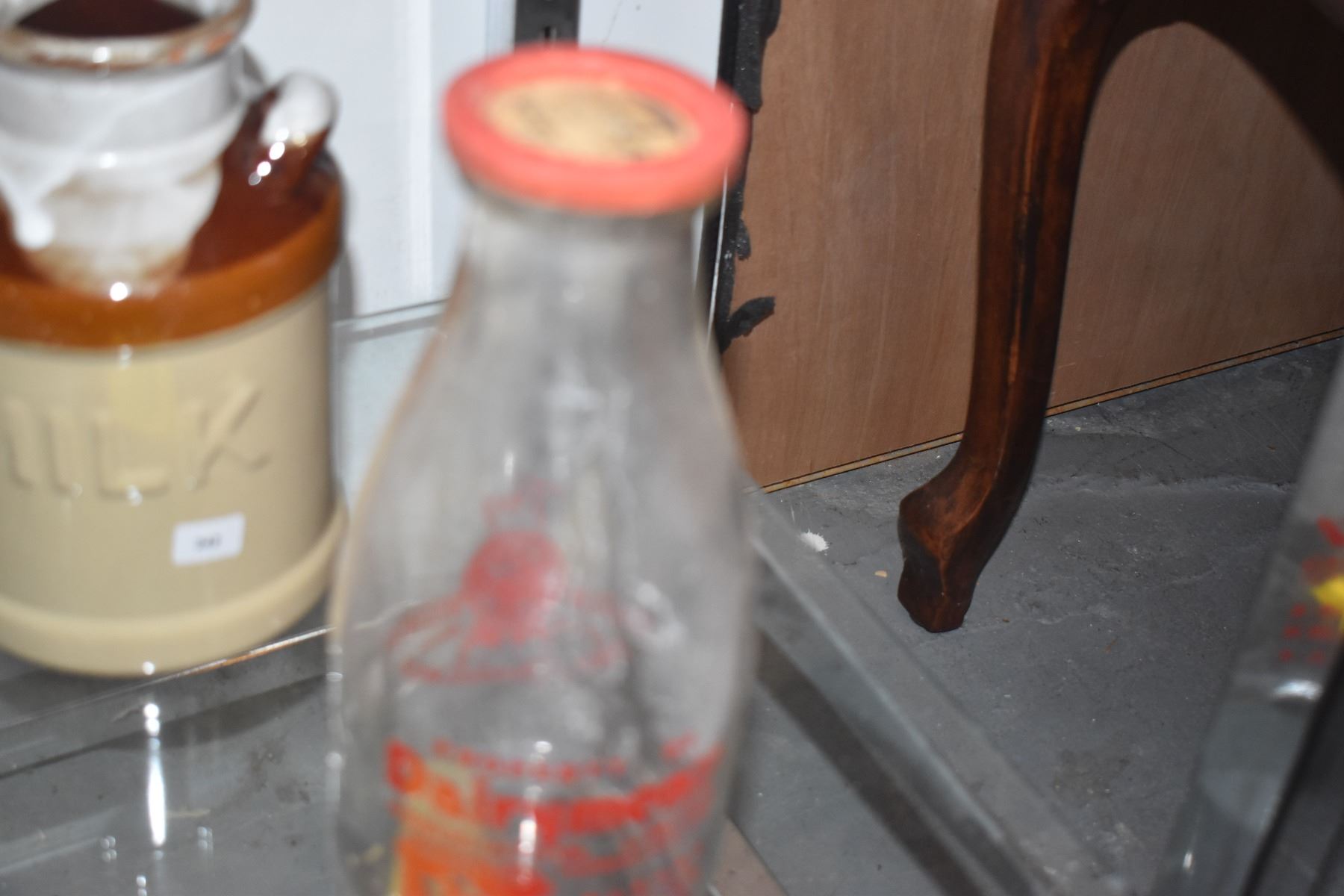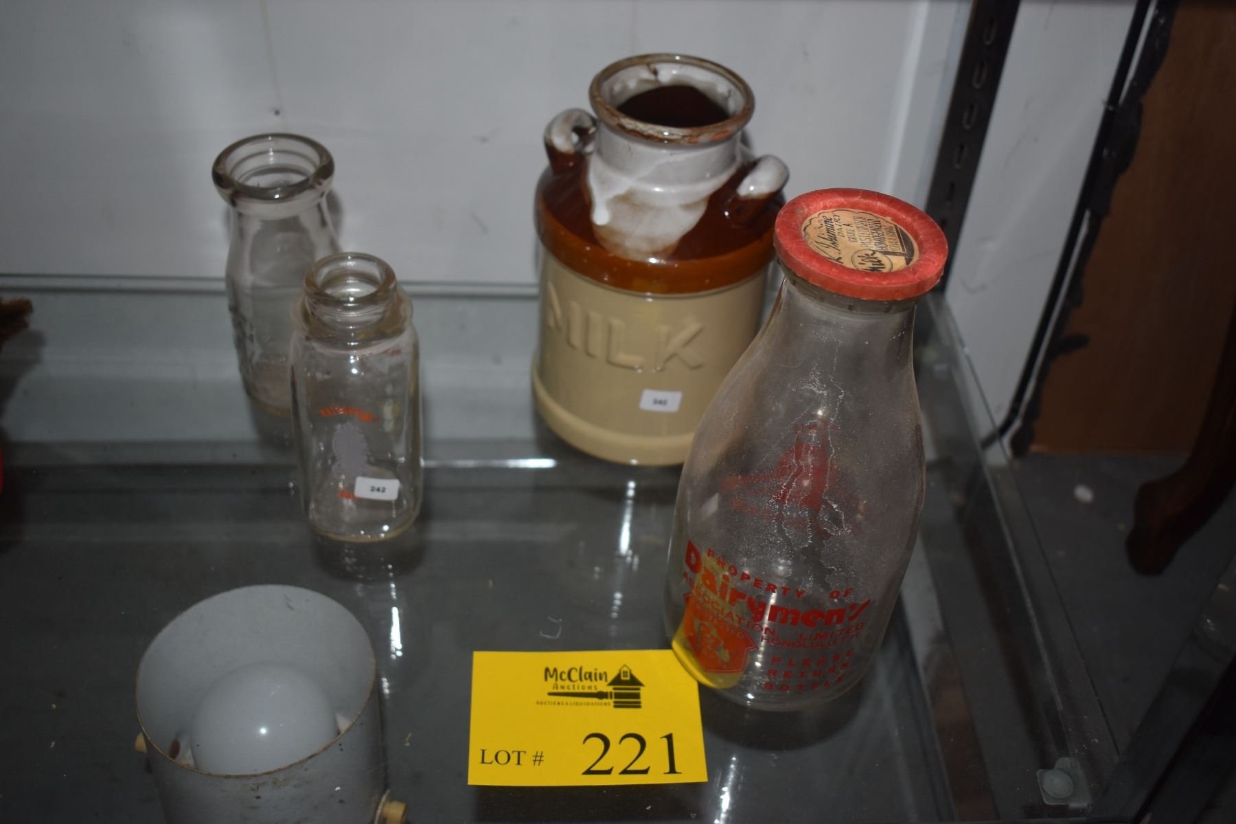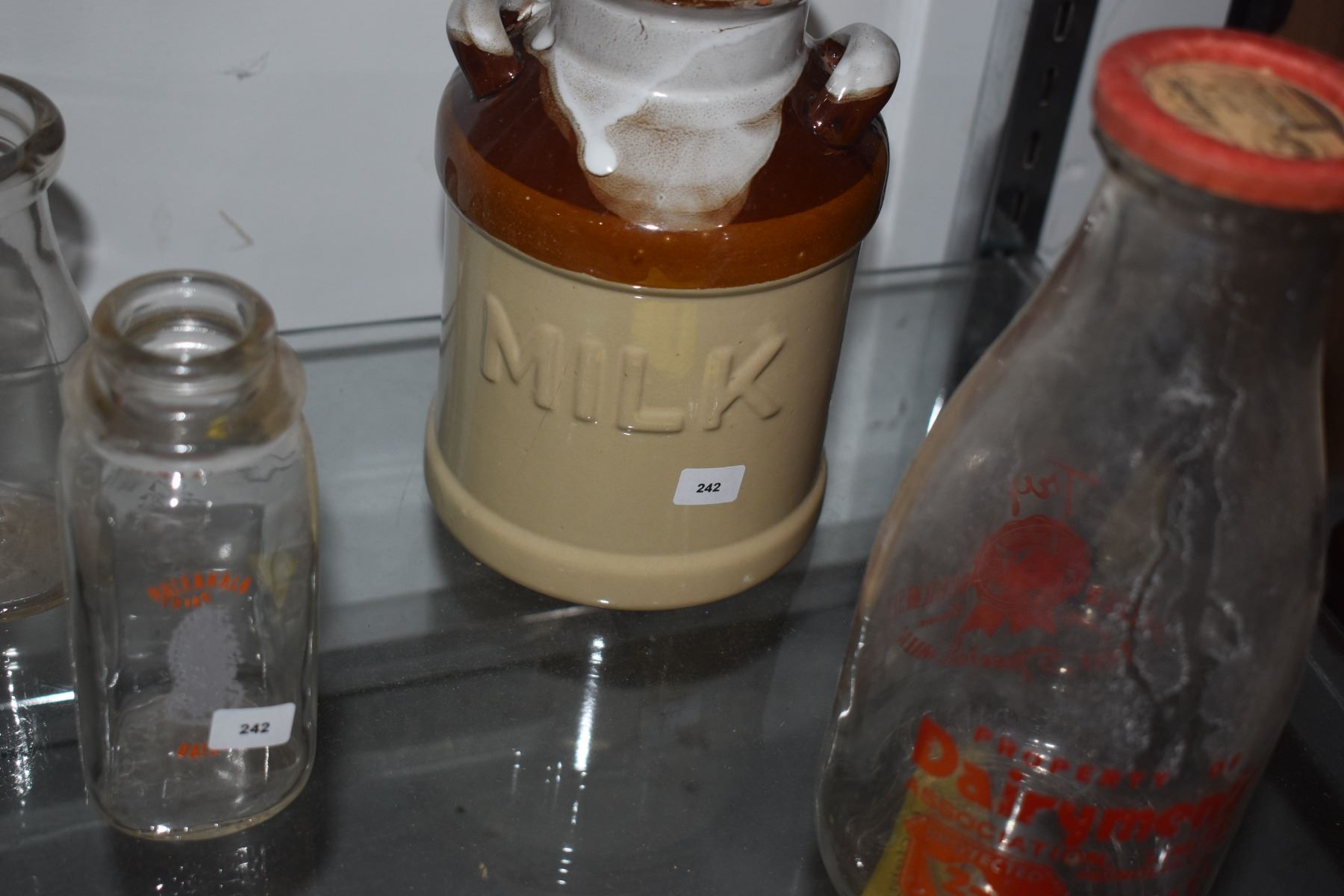 COLLECTION OF GLASS MILK BOTTLES & CERAMIC MILK POT (4 PCS)