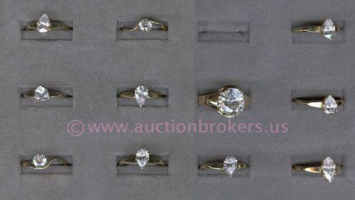 COLLECTION OF GOLD PLATED FASHION RINGS INCLUDING ELEVEN RINGS SET WITH CUBIC ZIRCONIA STONES IN VARYING SHAPES; PEAR, MARQUISE, ROUND, AND OVAL.