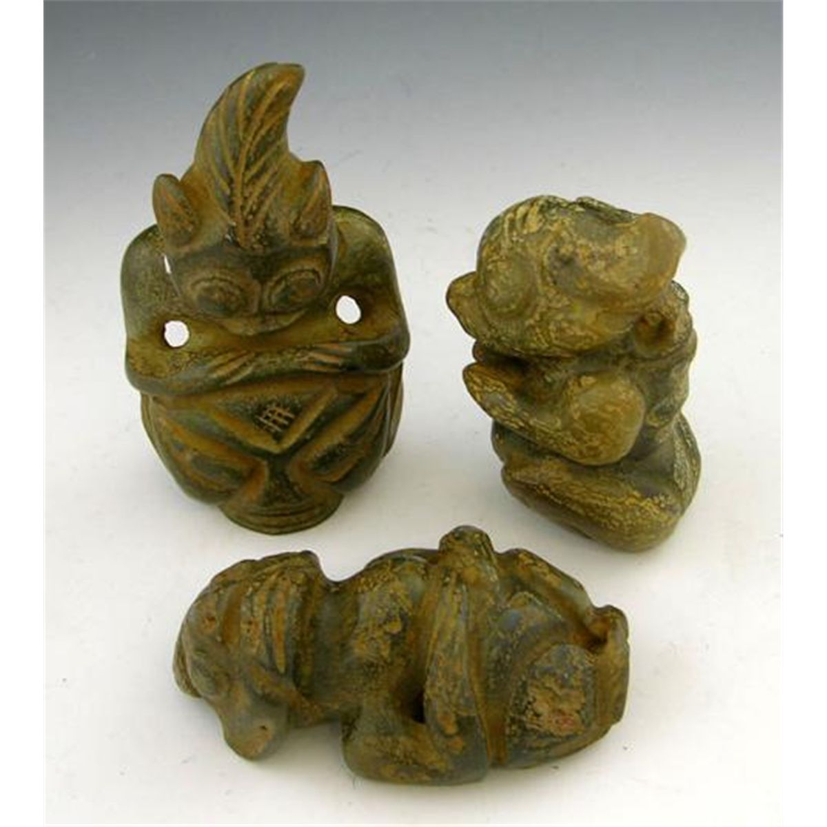 COLLECTION OF JADE EFEGEES; Group of Three Pre-Columbian Jade Effigies, pre 19th c. MWF645