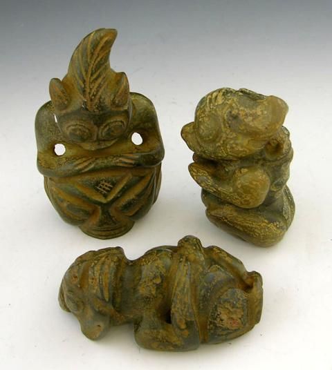COLLECTION OF JADE EFEGEES; Group of Three Pre-Columbian Jade Effigies, pre 19th c. MWF645