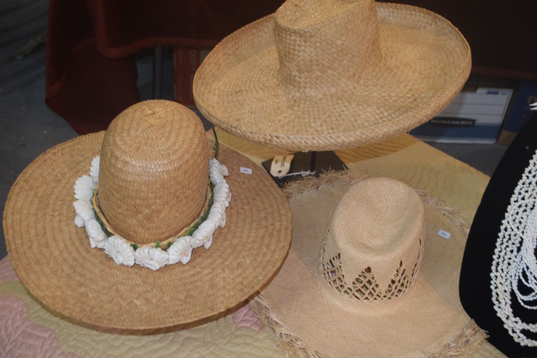 COLLECTION OF LAUHALA HATS & PANAMA HAT (3 PCS) (DOES NOT INCLUDE STANDS)