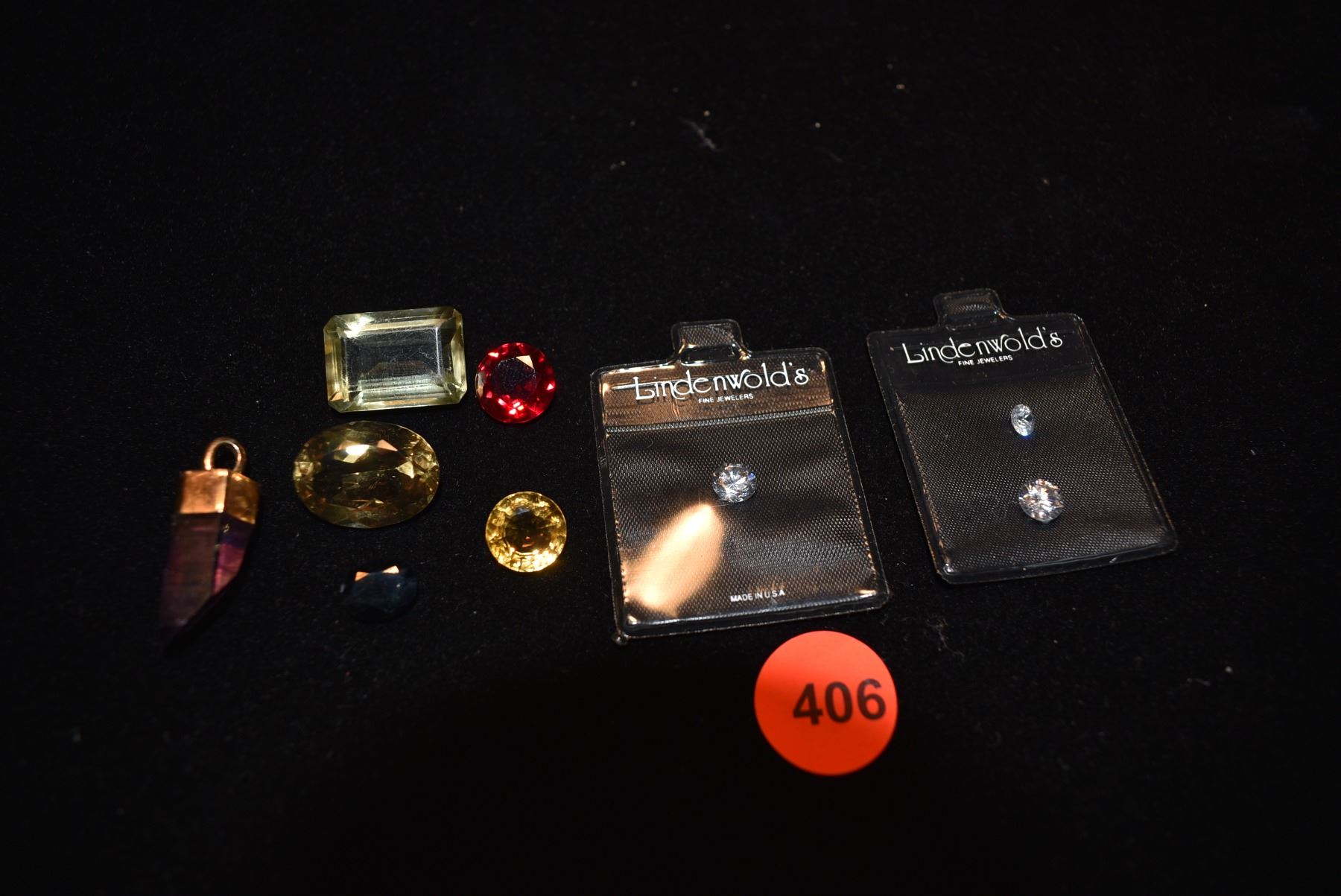 COLLECTION OF LOOSE COLORED STONES & AMETHYST PENDANT (9 PCS)