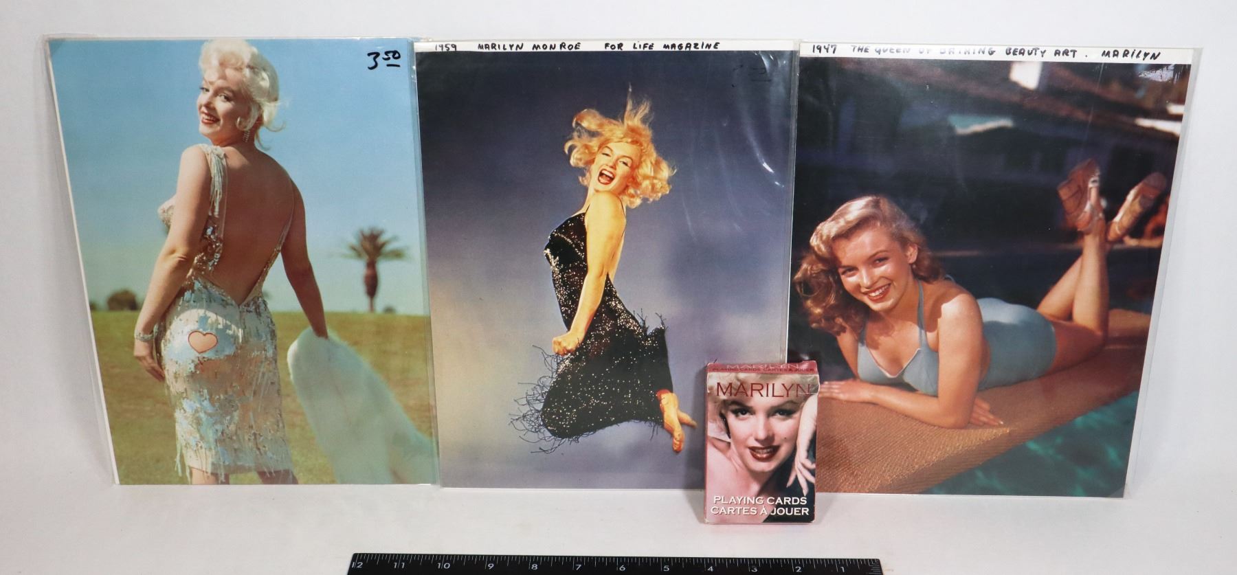 AND THREE PICTURES INCLUDING 1947 THE QUEEN OF BATHING BEAUTY, 1957 MARILYN MONROE FOR LIFE MAGAZINE, AND MORE