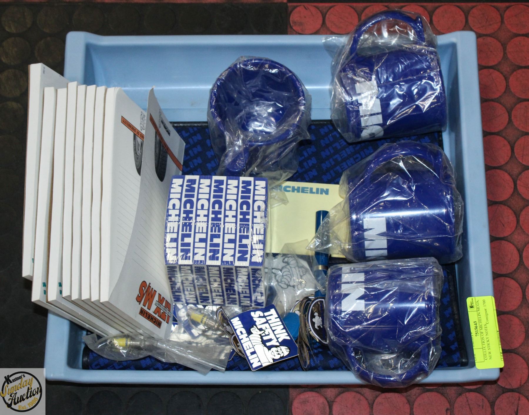 COLLECTION OF NEW MICHELIN MUGS, NEW STICKY NOTES,