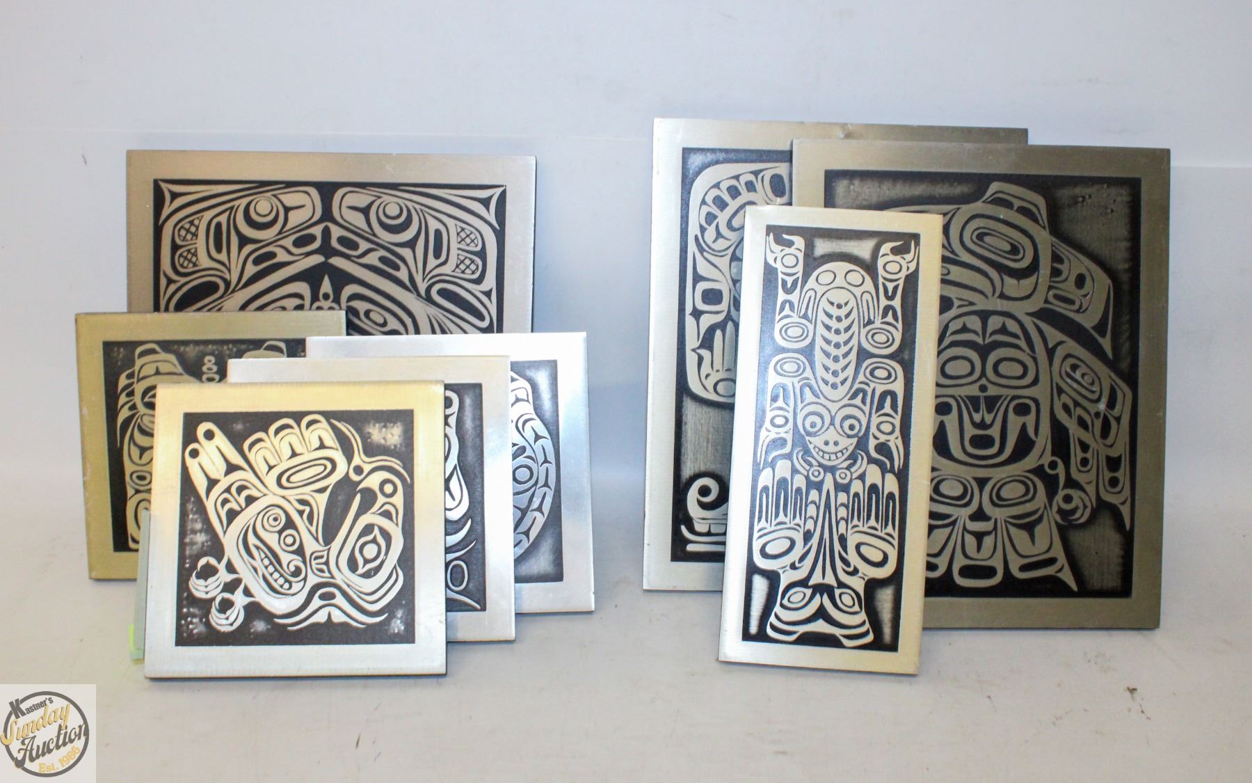 MADE HAIDA THEMED "TILES" WALL HANGINGS **ALL ITEMS MUST BE REMOVED BY 5PM SATURDAY, AUGUST 16TH 2025. ALL REMAINING ITEMS WILL BE SUBJECT TO A $6.00 PER DAY STORAGE CHARGE. ANY ITEMS REMAINING AFTER MONDAY, SEPTEMBER 1ST 2025 WILL BE CONSIDERED FORFEITED. NO REFUNDS WILL BE ISSUED FOR FORFEITED ITEMS. TO SCHEDULE A PICK UP APPOINTMENT CLICK HERE