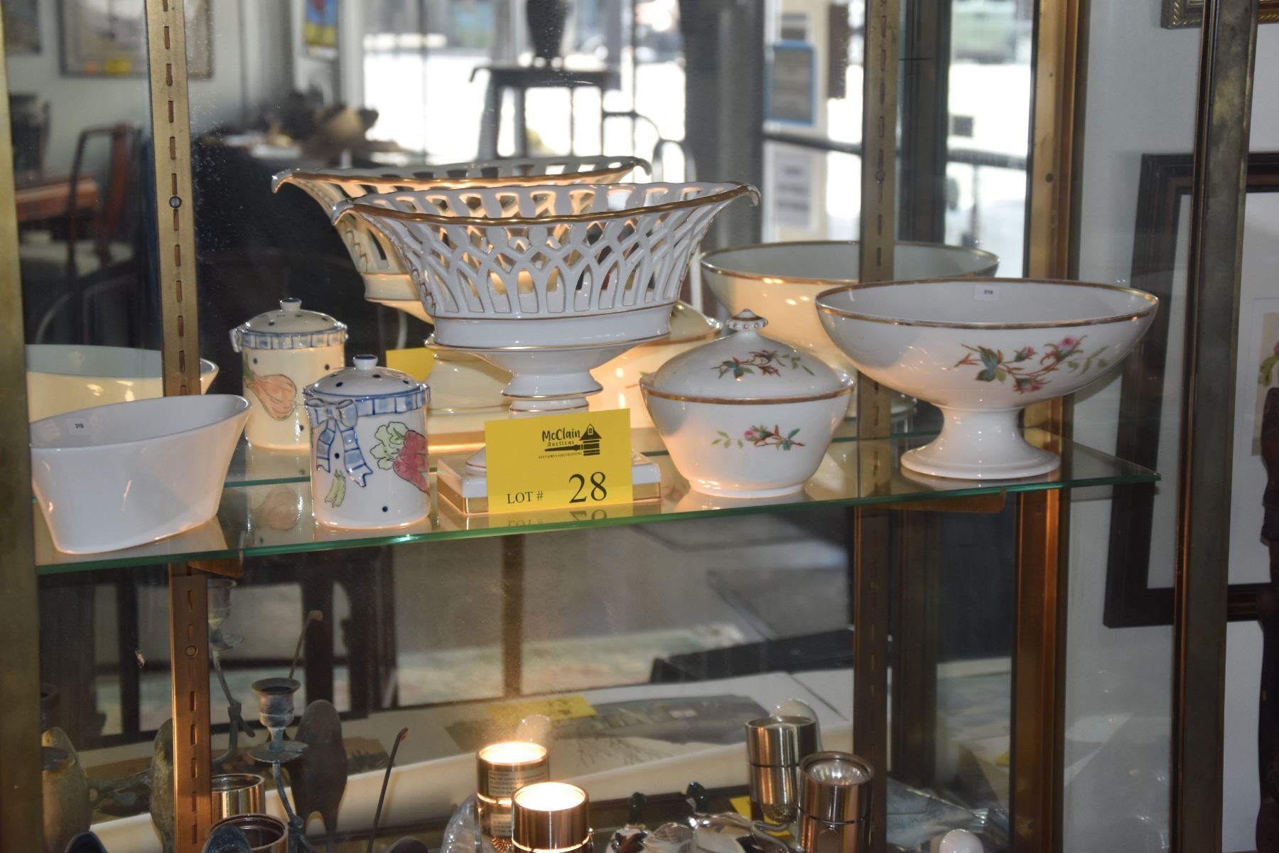 COLLECTION OF PEDESTAL BOWLS, COVERED DISHES & PORTUGAL BOWL (5 PCS)