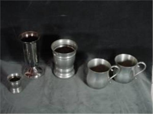 COLLECTION OF PEWTER CUPS INCLUDING TWO MATCHING EALES, SHEFFIELD ENGLAND MUGS 3.5"X2.5", AND MATCHI