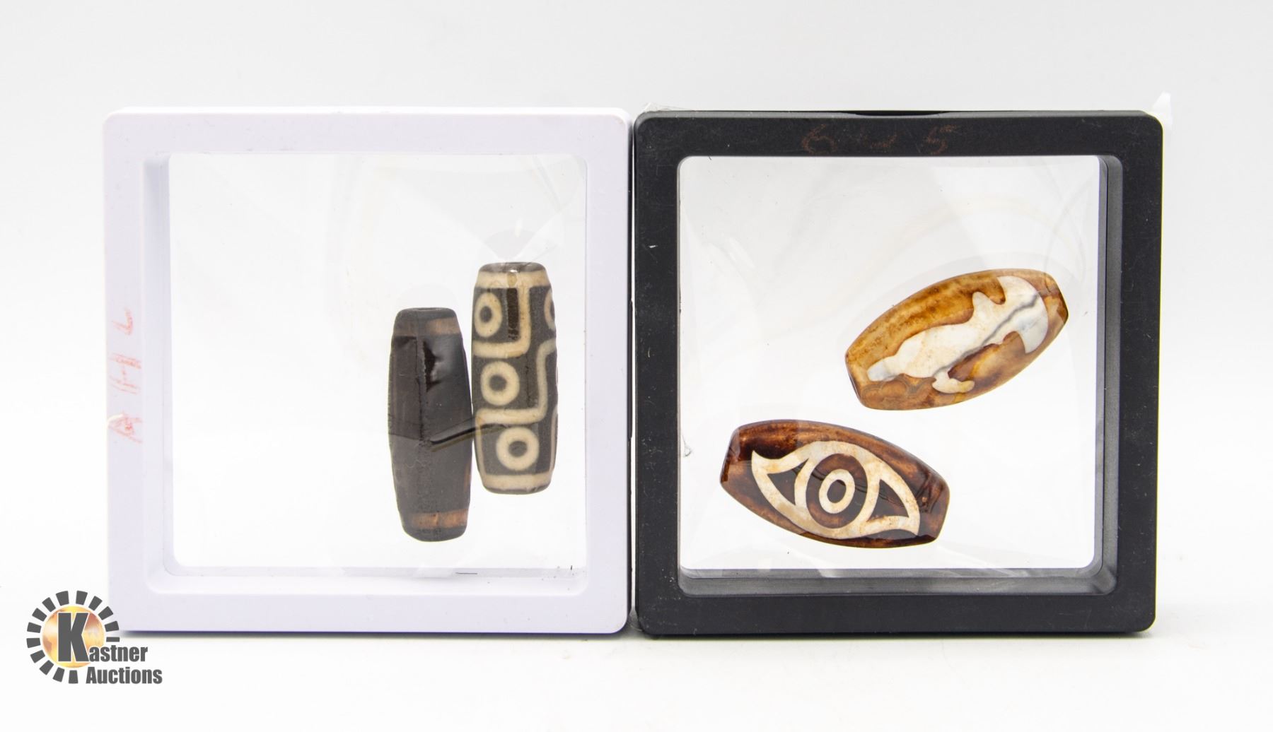 A COLLECTION OF FOUR SINO-TIBETAN DZI BEADS **ALL ITEMS MUST BE REMOVED BY 5PM SATURDAY, SEPTEMBER 30TH 2023. ALL REMAINING ITEMS WILL BE SUBJECT TO A $6.00 PER DAY STORAGE CHARGE. ANY ITEMS REMAINING AFTER MONDAY, OCTOBER 16TH, 2023 WILL BE CONSIDERED FORFEITED. NO REFUNDS WILL BE ISSUED FOR FORFEITED ITEMS. TO SCHEDULE A PICK UP APPOINTMENT CLICK HERE