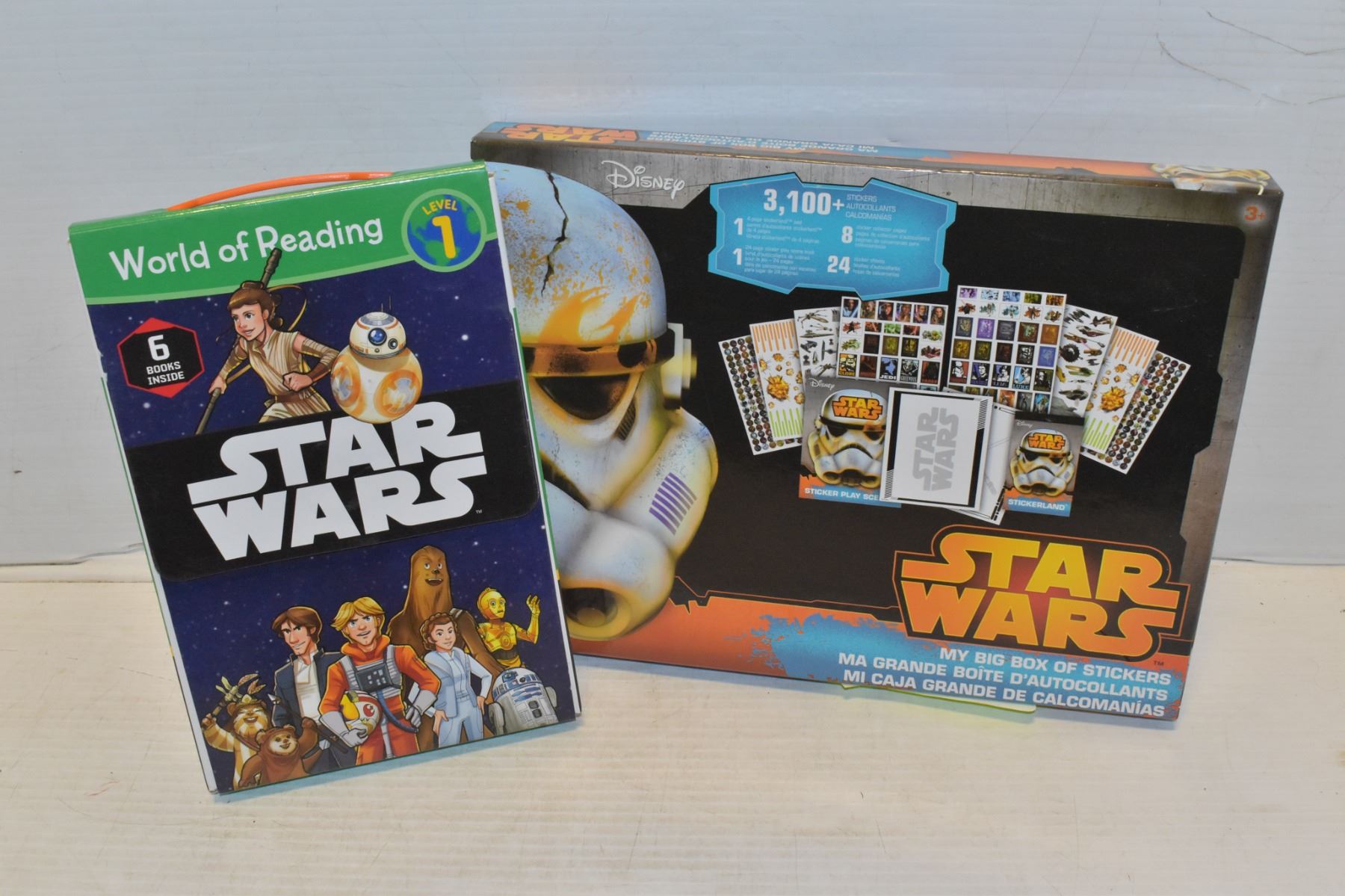 BOX OF STAR WARS STICKERS, AND A SET OF 6 CHILDRENS READING BOOKS