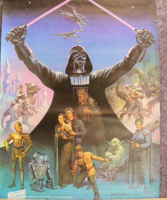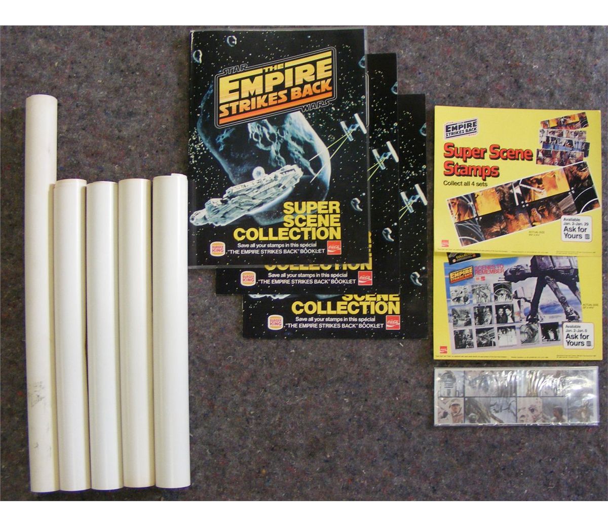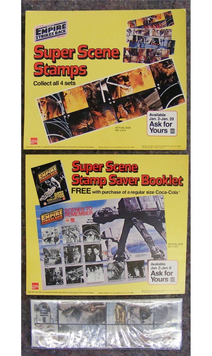1980 11 total, from the coca-cola company, one Empire strikes back poster with minor damage, four character posters, two super scene stamp saver booklet ads 10"x9" each and 3 scene collection books largest is 33"x24"