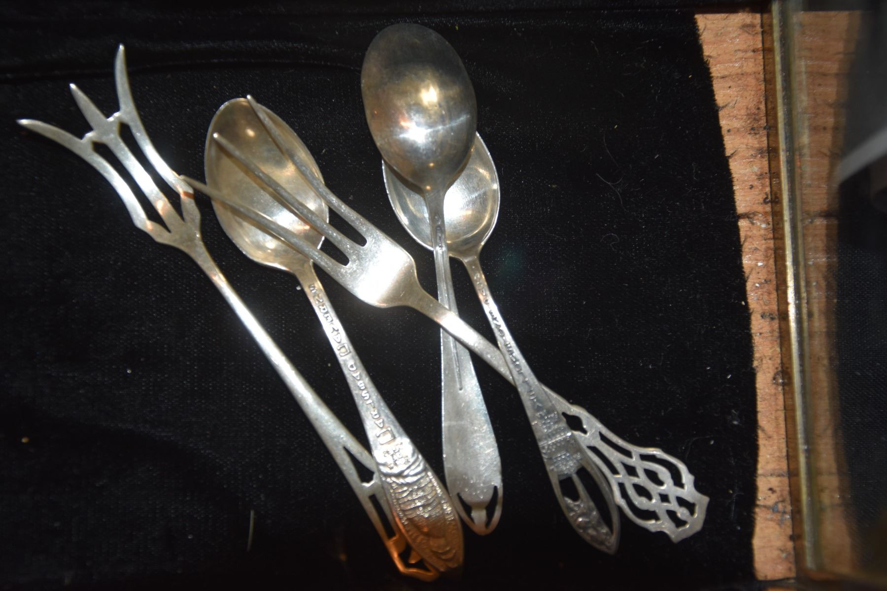 COLLECTION OF STERLING COLLECTORS SPOONS & FORKS (2 MARKED 800) (59 G STERLING & 24 G 800 SILVER)