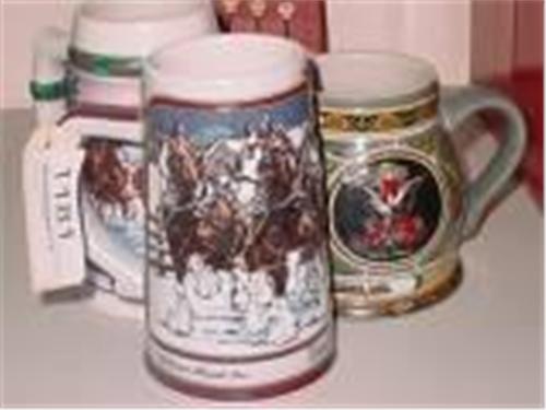 COLLECTION OF THREE COLLECTIBLE BUDWEISER STEINS.