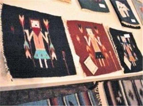 COLLECTION OF THREE PLACE MATS 12"X11" IN THE INDIAN WOVEN SADDLE BLANKET STYLE IN VARIOUS COLORS OF KACHINA DOLLS.