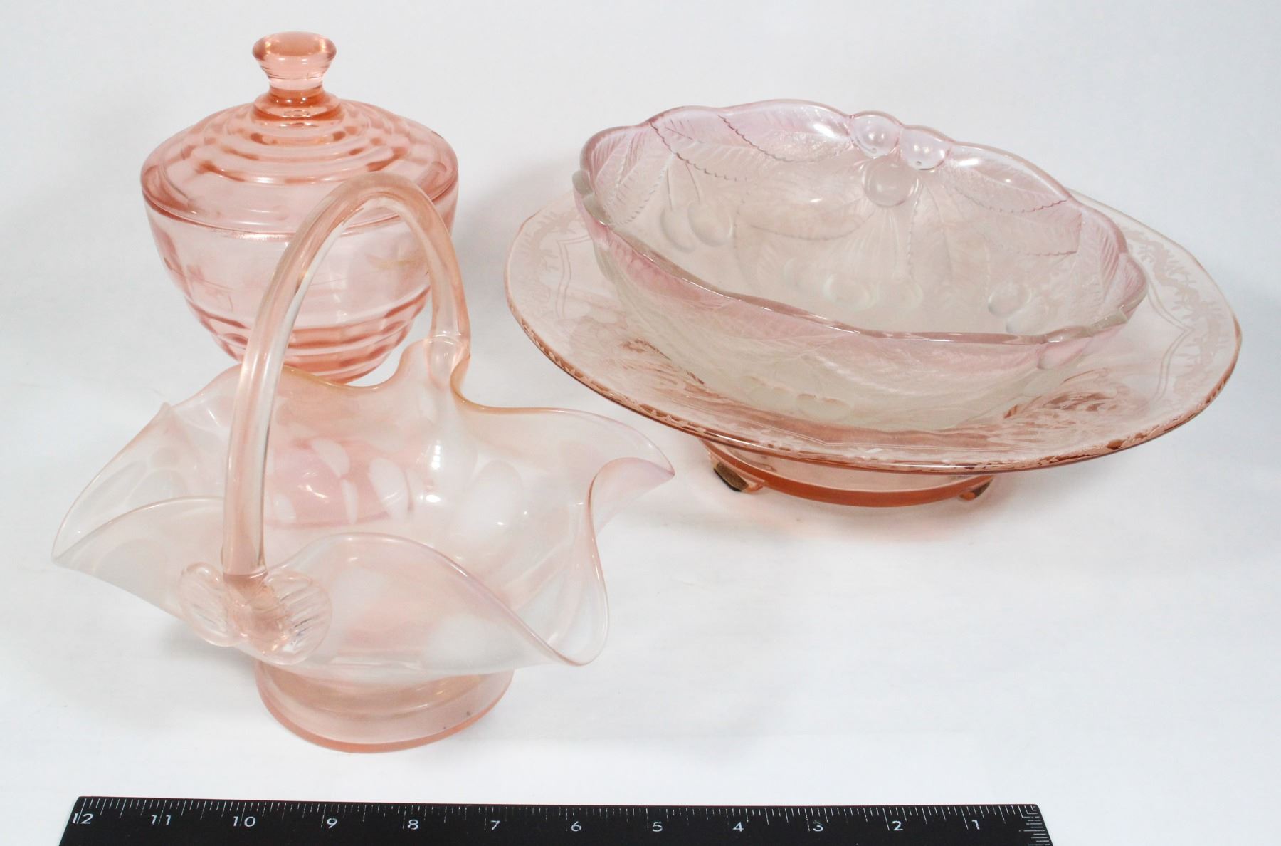 COLLECTION OF VINTAGE GLASS SERVING PIECES.