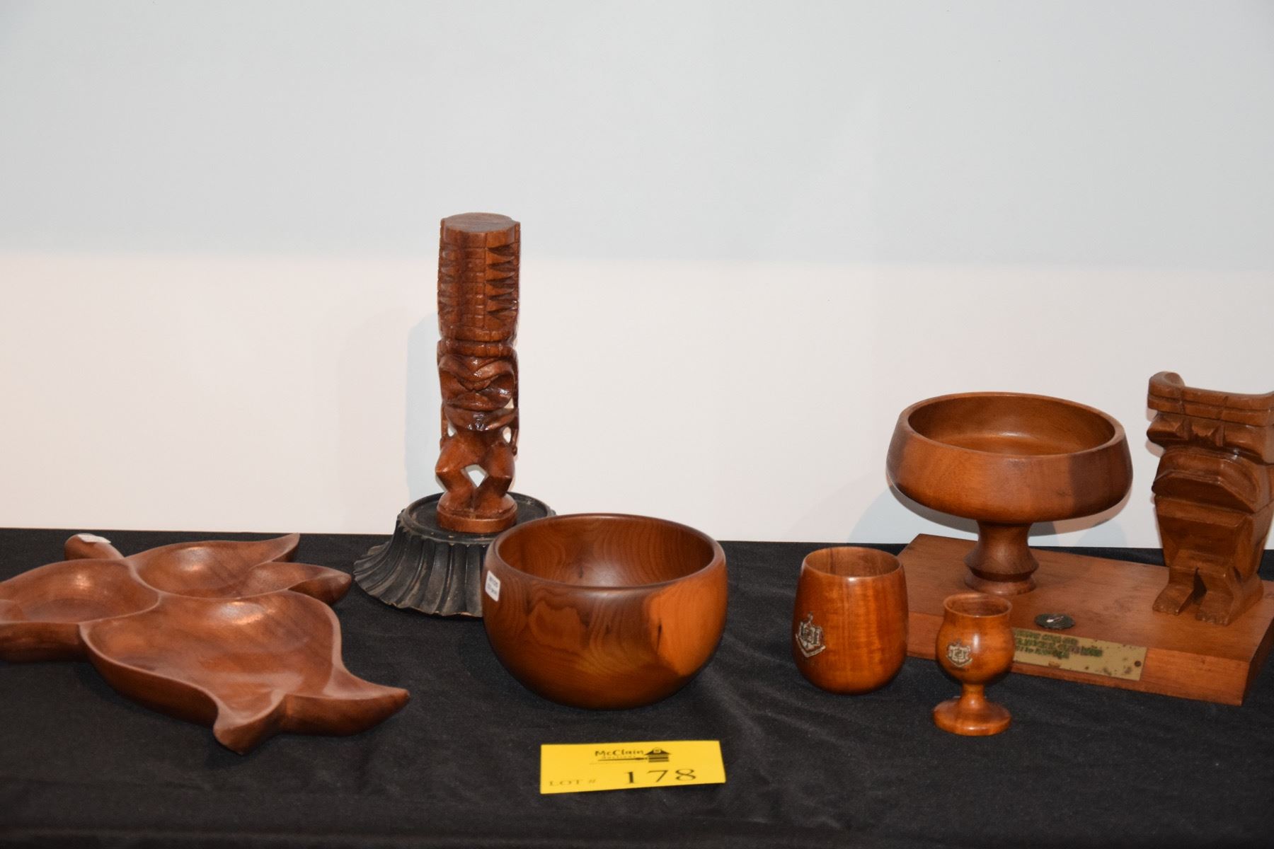 COLLECTION OF VINTAGE TIKI TROPHIES, WOOD BOWL, LEAF DISH, KOA CUP & GOBLET (6 PCS)