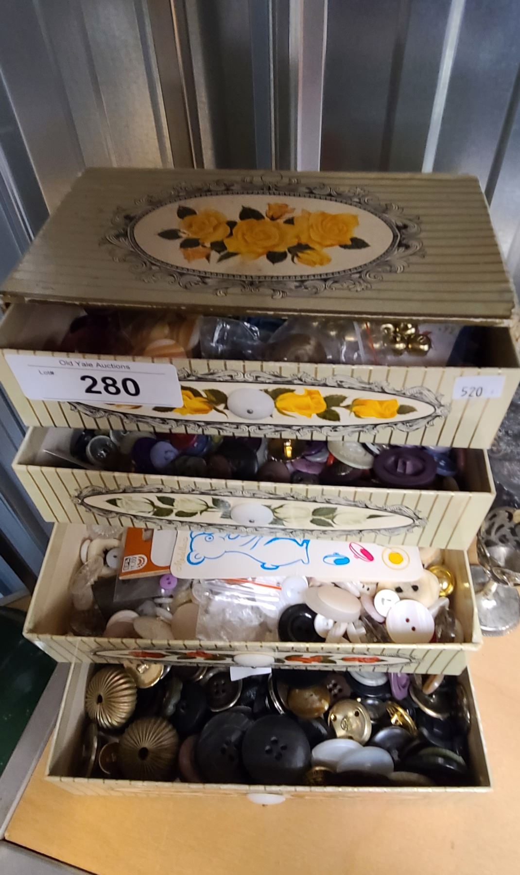 COLLECTION VINTAGE BUTTONS, BUTTON BOX, 5 MINI STAINLESS STEEL GOBLETS