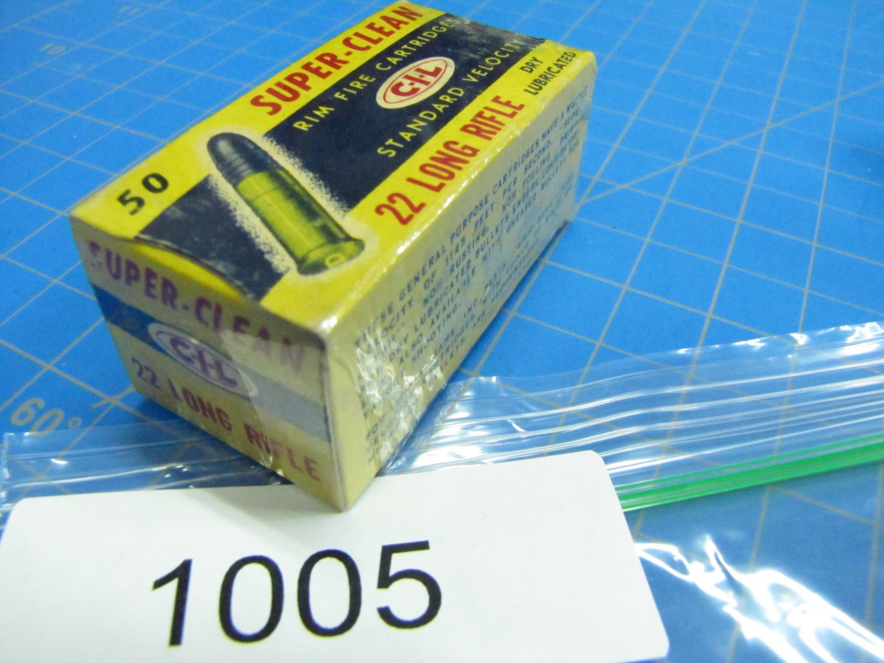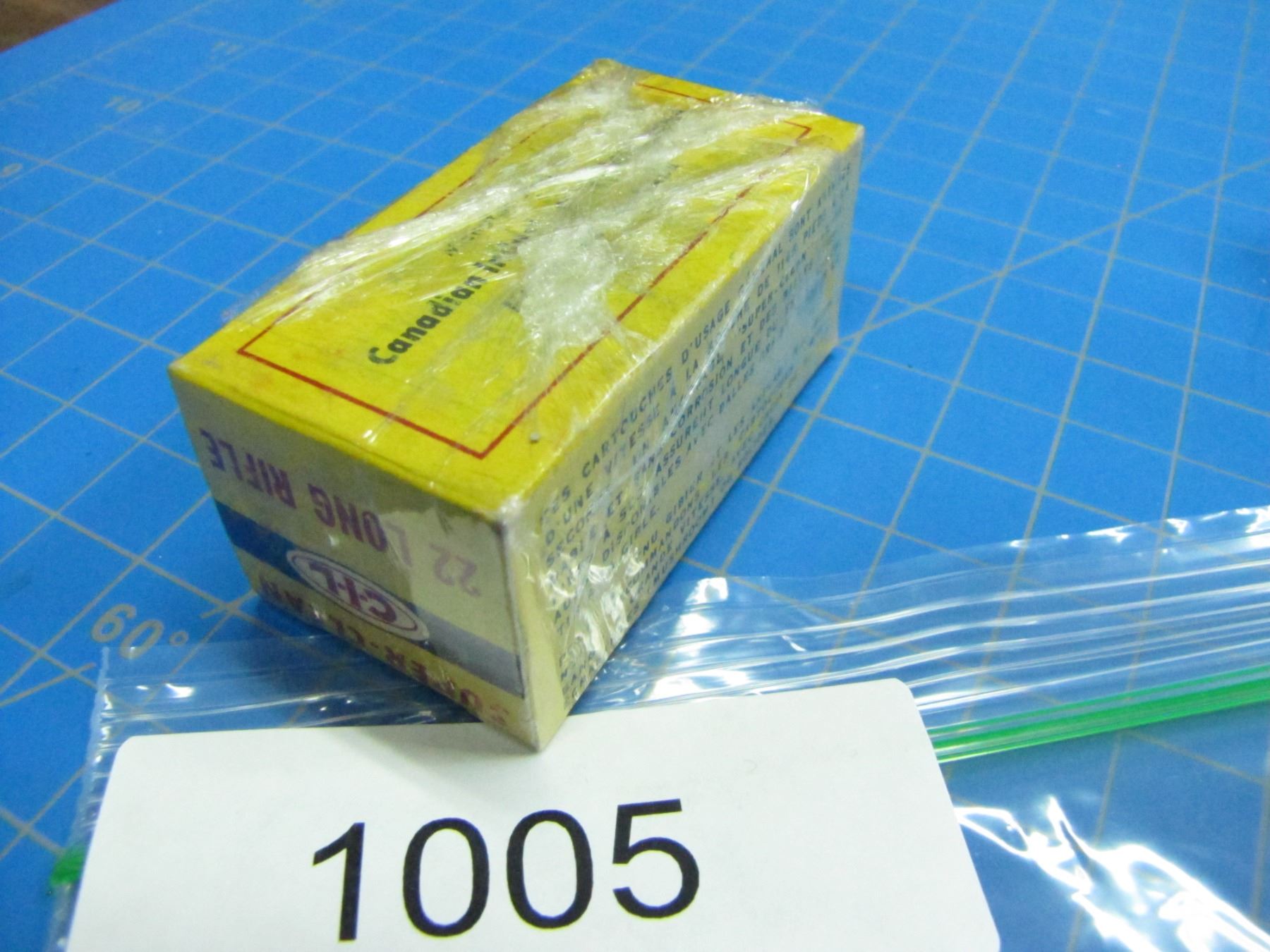 COLLECTOR BOX OF .22 AMMO - appear to be full -- we did not open each box to confirm counts. Some boxes wrapped in cellophane - did not unwrap - does give some flash back in the photos -