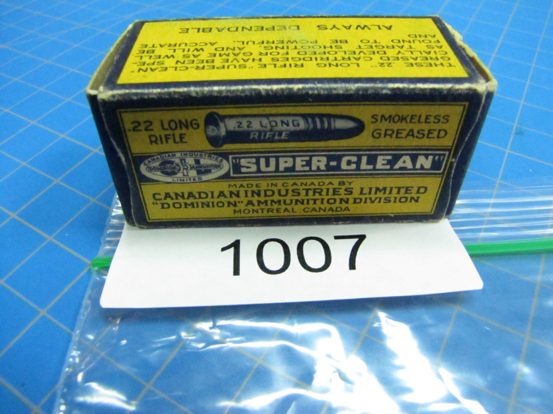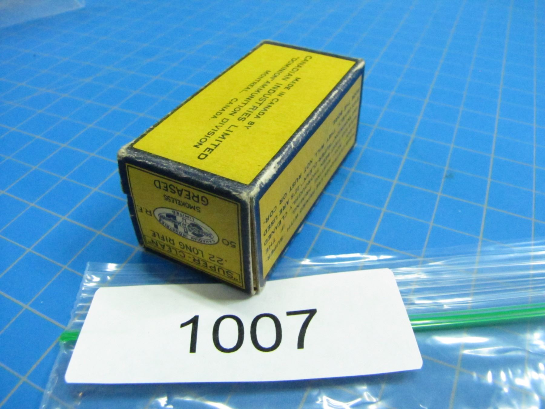 COLLECTOR BOX OF .22 AMMO - appear to be full -- we did not open each box to confirm counts. Some boxes wrapped in cellophane - did not unwrap - does give some flash back in the photos -