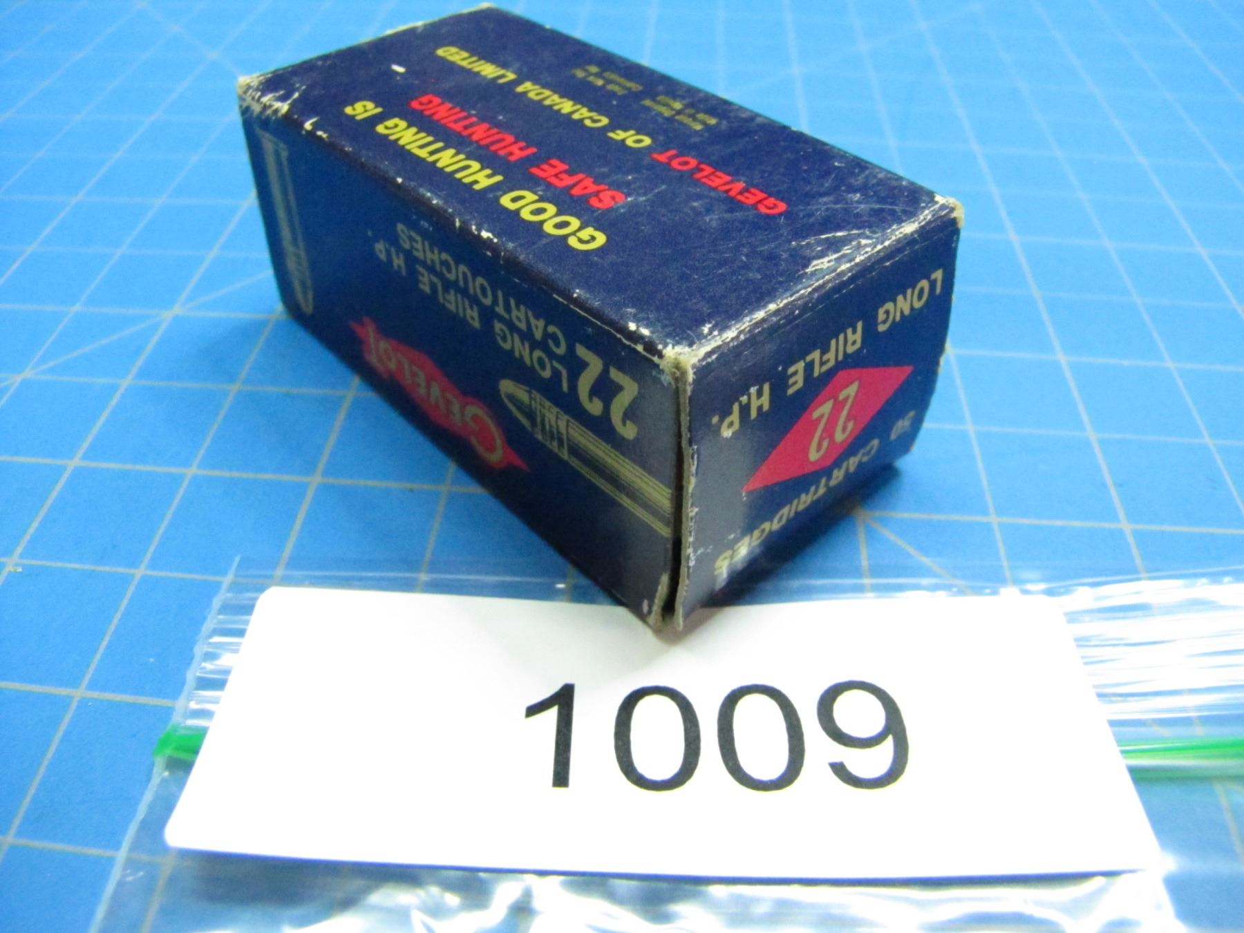 COLLECTOR BOX OF .22 AMMO - appear to be full -- we did not open each box to confirm counts. Some boxes wrapped in cellophane - did not unwrap - does give some flash back in the photos -