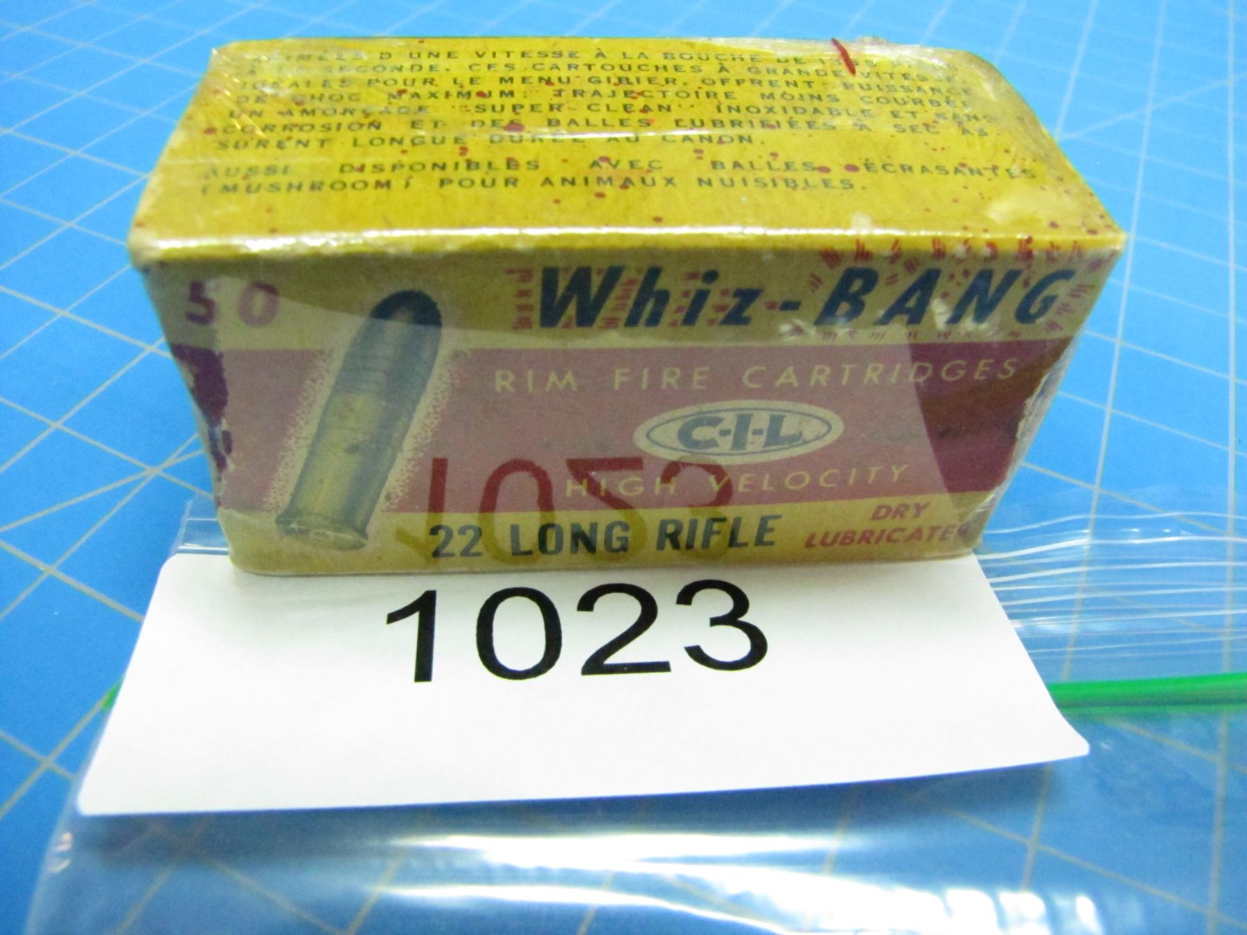 COLLECTOR BOX OF .22 AMMO - appear to be full -- we did not open each box to confirm counts. Some boxes wrapped in cellophane - did not unwrap - does give some flash back in the photos -