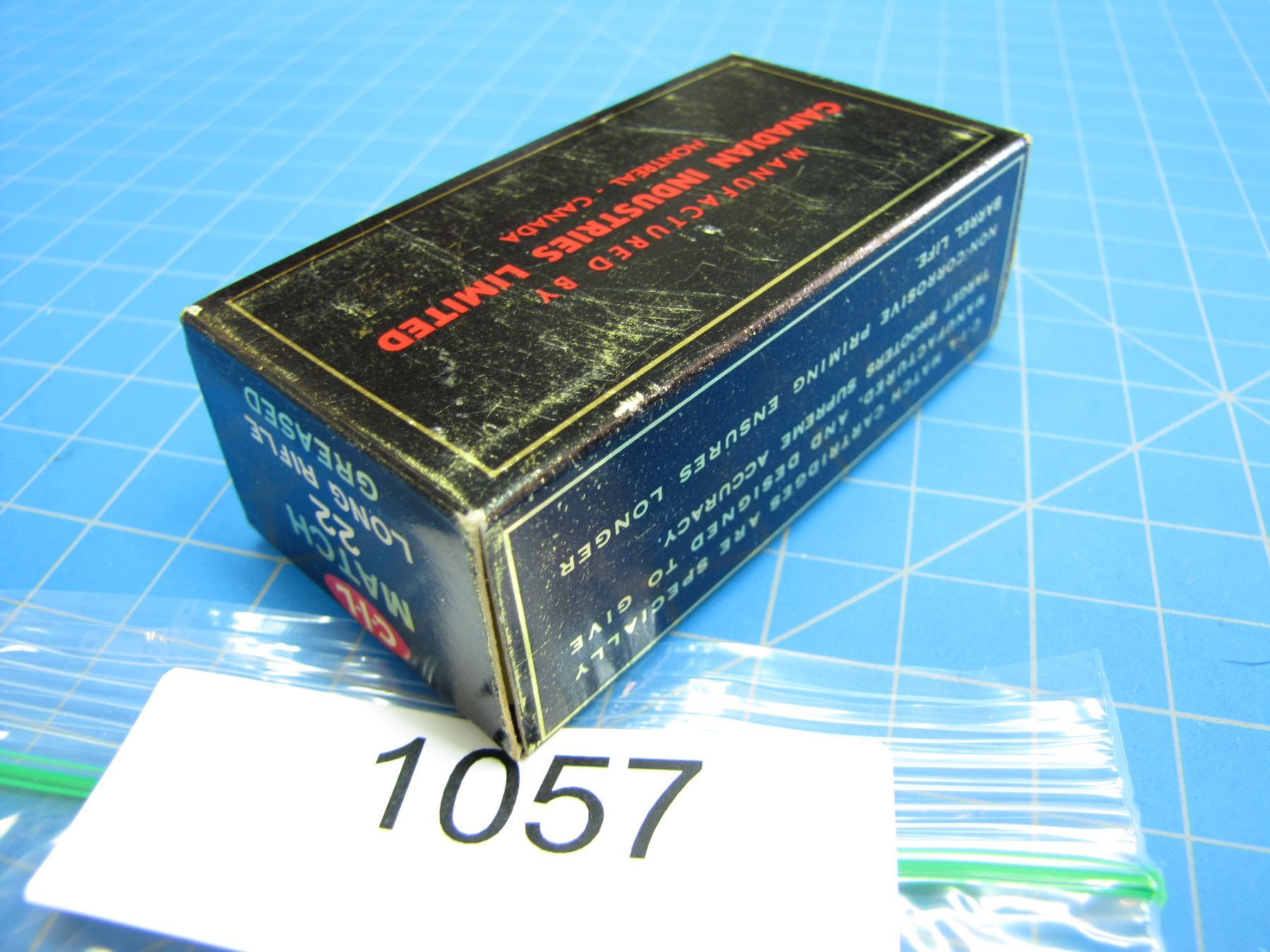 COLLECTOR BOX OF .22 AMMO - appear to be full -- we did not open each box to confirm counts. Some boxes wrapped in cellophane - did not unwrap - does give some flash back in the photos -