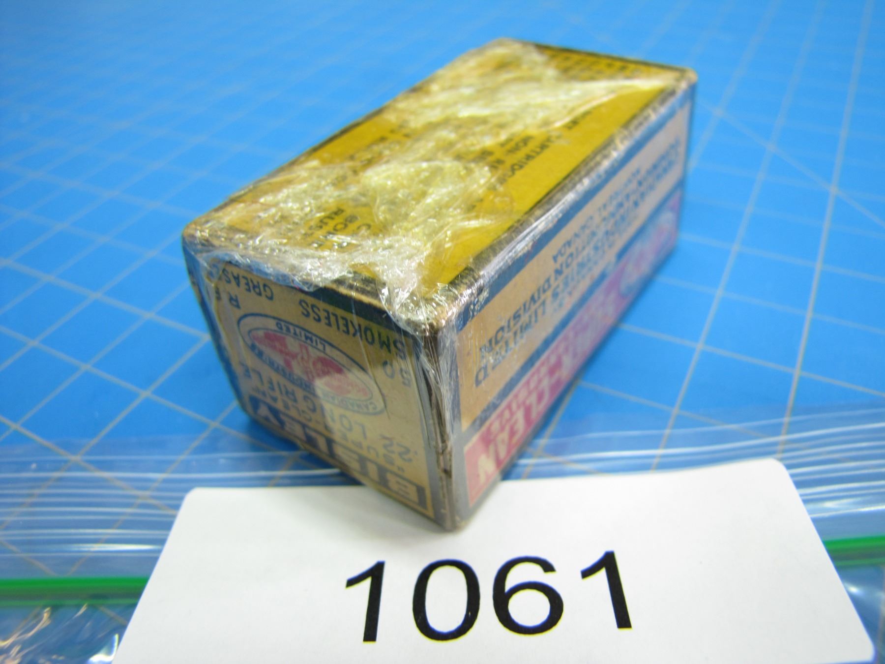 COLLECTOR BOX OF .22 AMMO - appear to be full -- we did not open each box to confirm counts. Some boxes wrapped in cellophane - did not unwrap - does give some flash back in the photos -