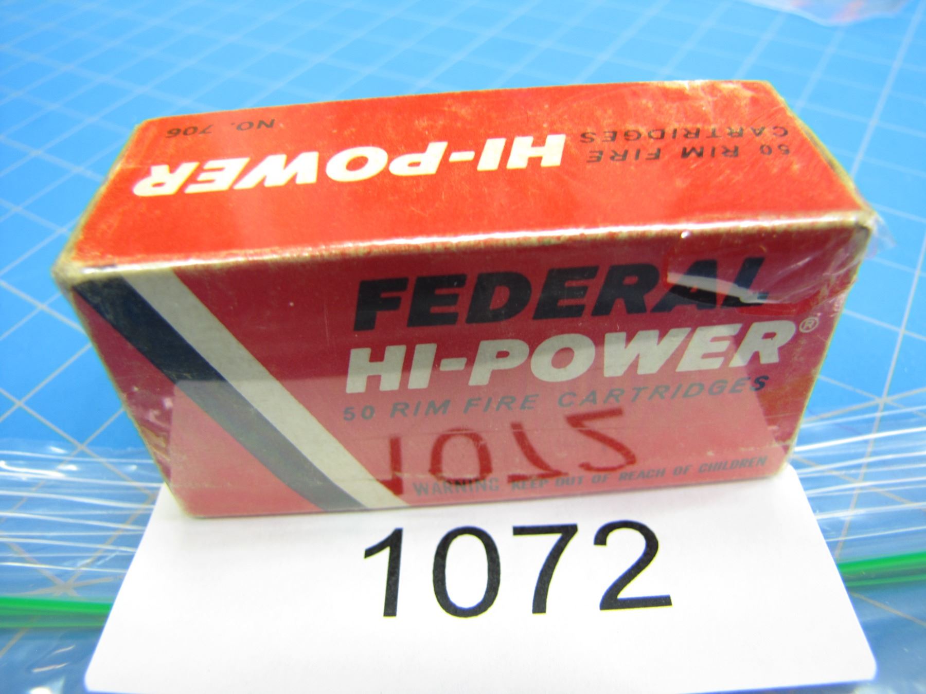 COLLECTOR BOX OF .22 AMMO - appear to be full -- we did not open each box to confirm counts. Some boxes wrapped in cellophane - did not unwrap - does give some flash back in the photos -