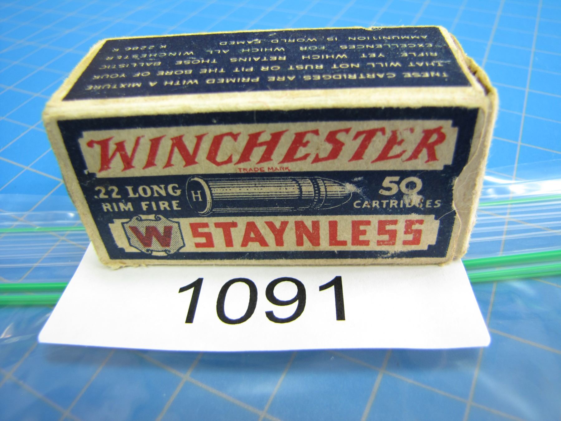COLLECTOR BOX OF .22 AMMO - appear to be full -- we did not open each box to confirm counts. Some boxes wrapped in cellophane - did not unwrap - does give some flash back in the photos -