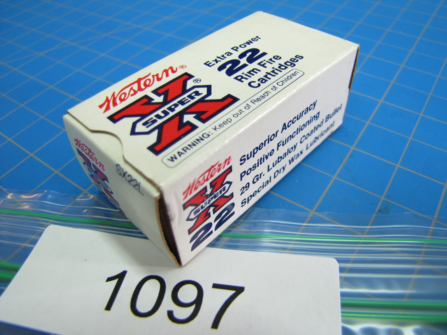 COLLECTOR BOX OF .22 AMMO - appear to be full -- we did not open each box to confirm counts. Some boxes wrapped in cellophane - did not unwrap - does give some flash back in the photos -