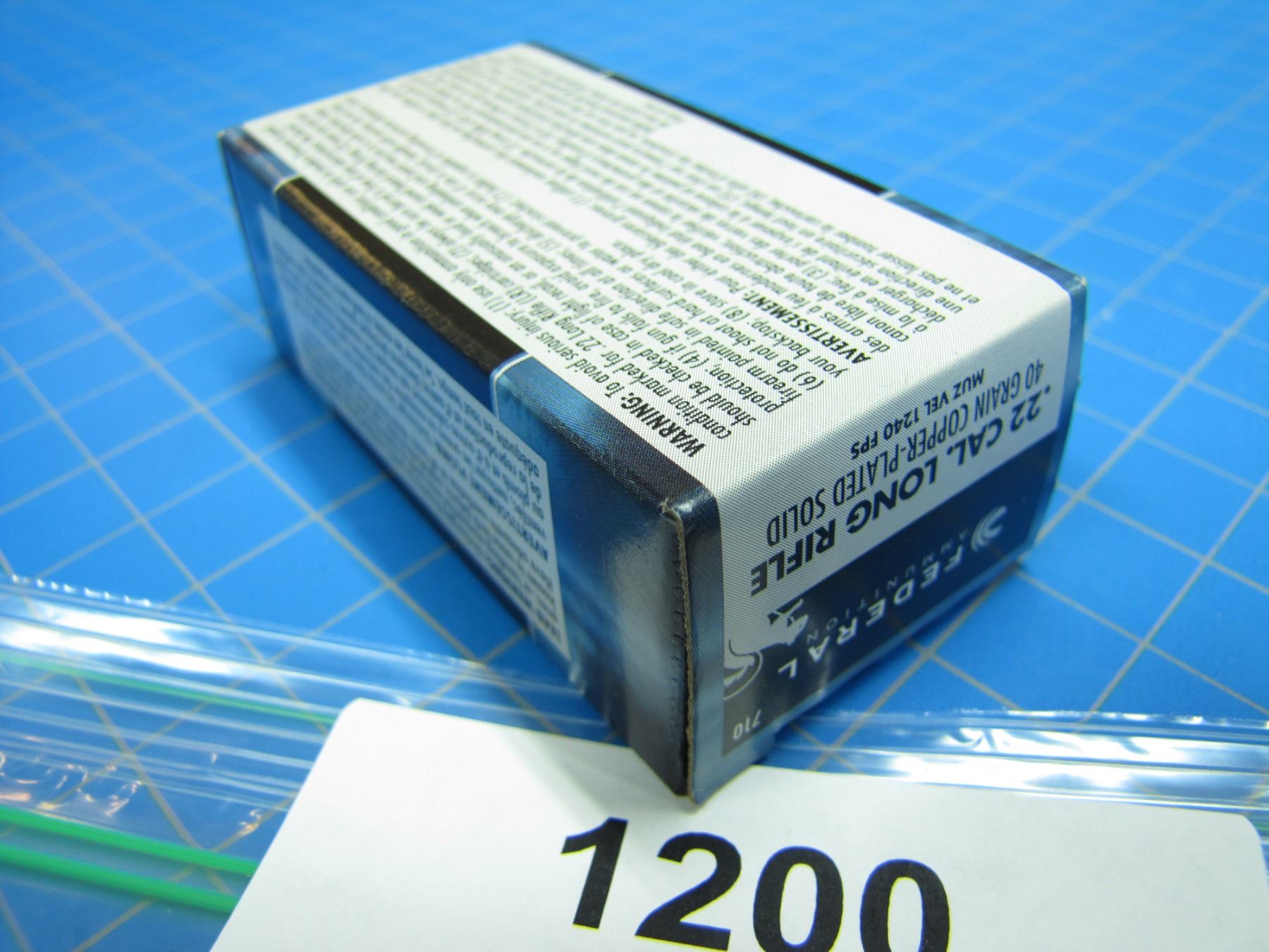 COLLECTOR BOX OF .22 AMMO - appear to be full -- we did not open each box to confirm counts.  Some boxes wrapped in cellophane - did not unwrap - does give some flash back in the photos -