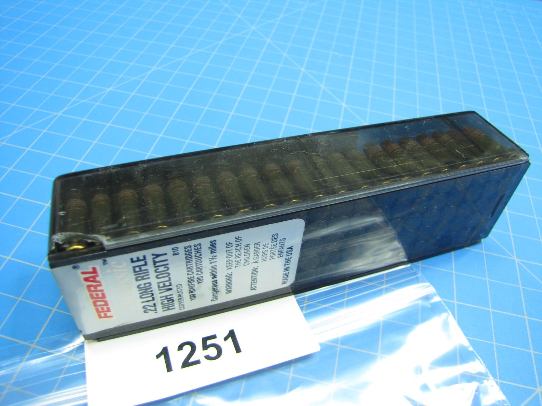 COLLECTOR BOX OF .22 AMMO - appear to be full -- we did not open each box to confirm counts. Some boxes wrapped in cellophane - did not unwrap - does give some flash back in the photos -