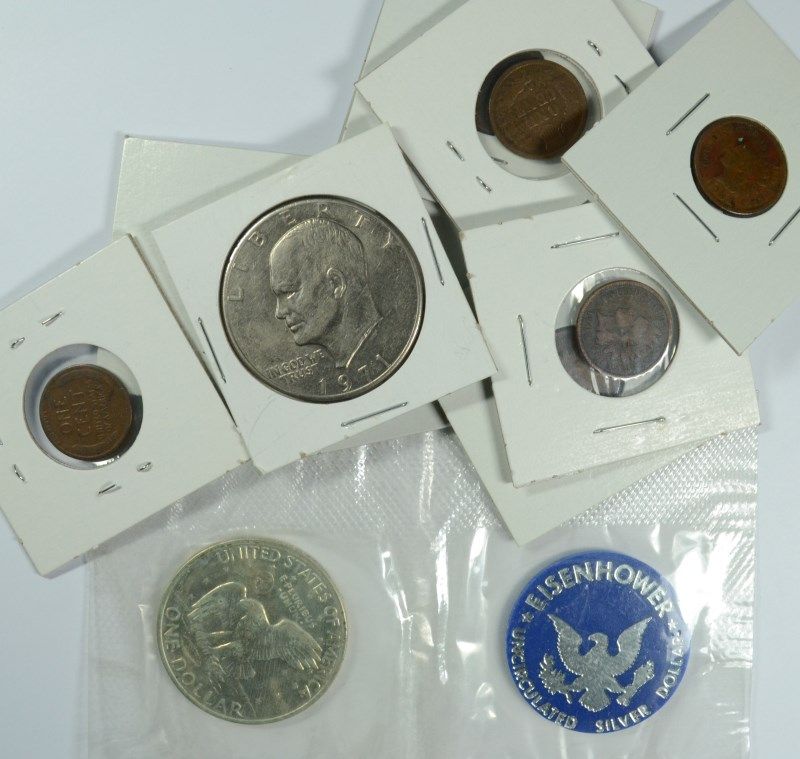COLLECTOR LOT: 7 INDIAN CENTS, 1916-S LINCOLN CENT & 1971 IKE DOLLAR CLAD &