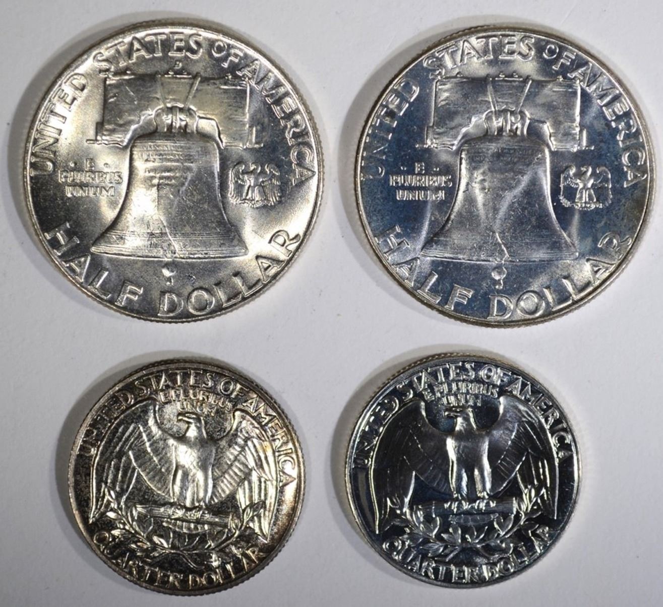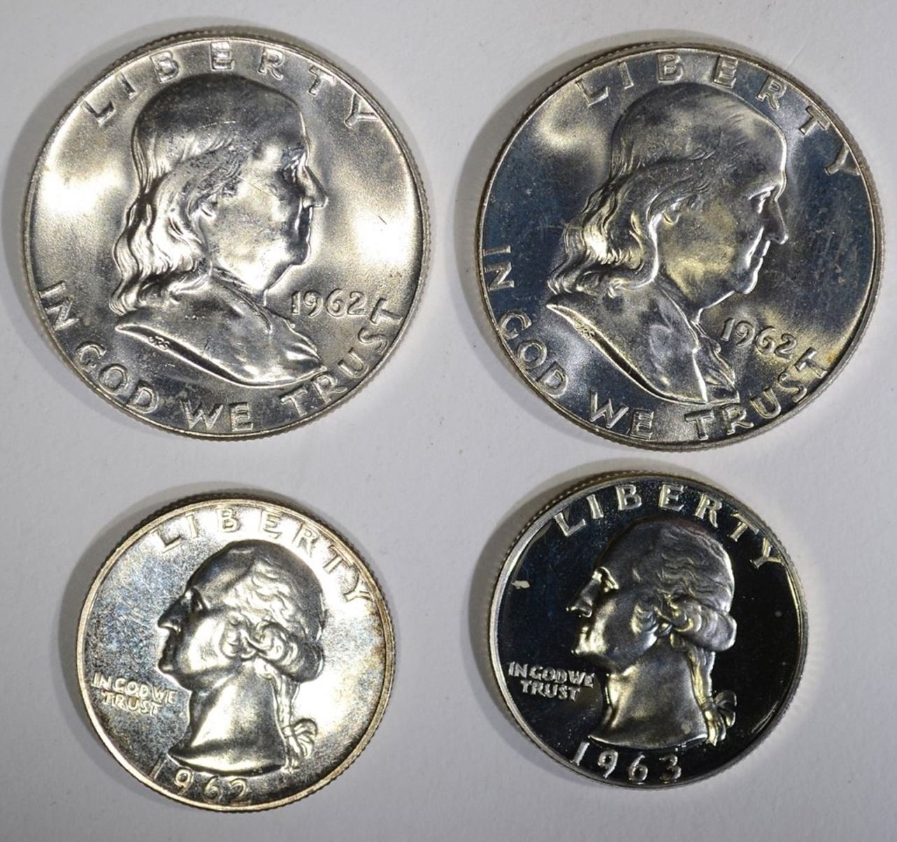 1962 & 63 PROOF QUARTERS & 1962 & 62-D GEM BU FRANKLIN HALF DOLLARS ESTIMATE $70 - $75.