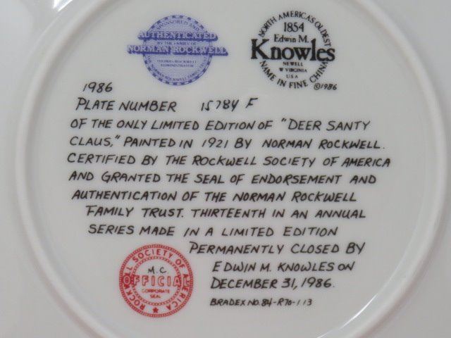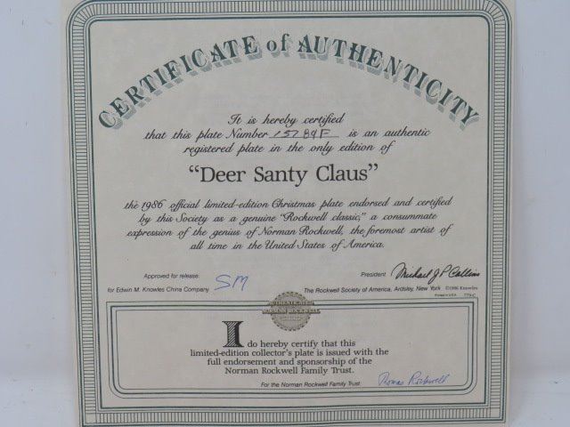 COLLECTOR PLATE (BRADFORD EXCHANGE) *DEER SANTY CLAUSE* (13TH IN ROCKWELL'S ANNUAL SERIES)
