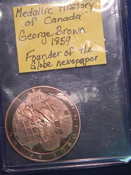 COLLECTOR'S COIN - MEDALLIC HISTORY OF CANADA - GEORGE BROWN - 1859 FOUNDER OF THE GLOBE NEWSPAPER