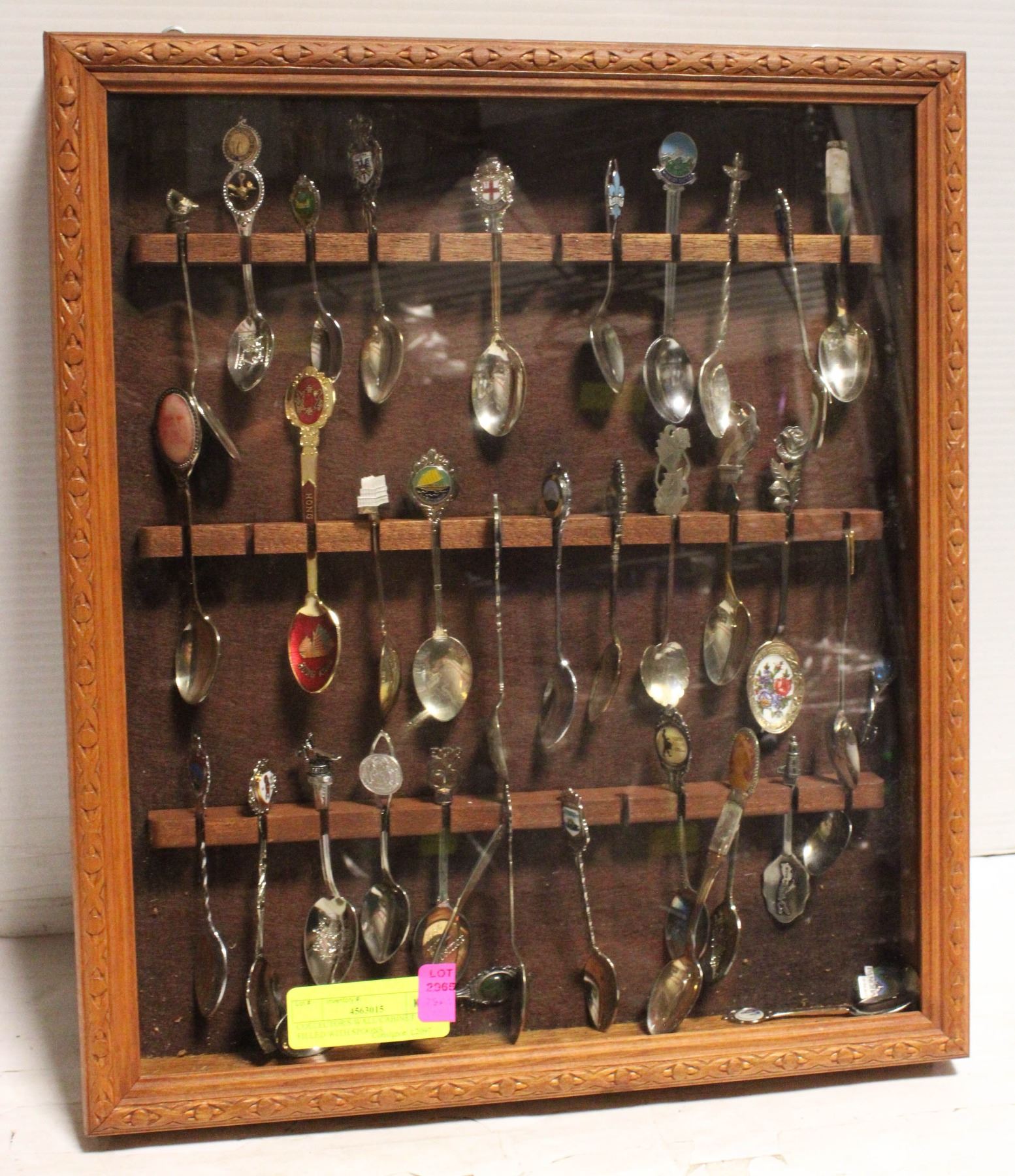 COLLECTOR'S WALL CABINET FILLED WITH SPOONS