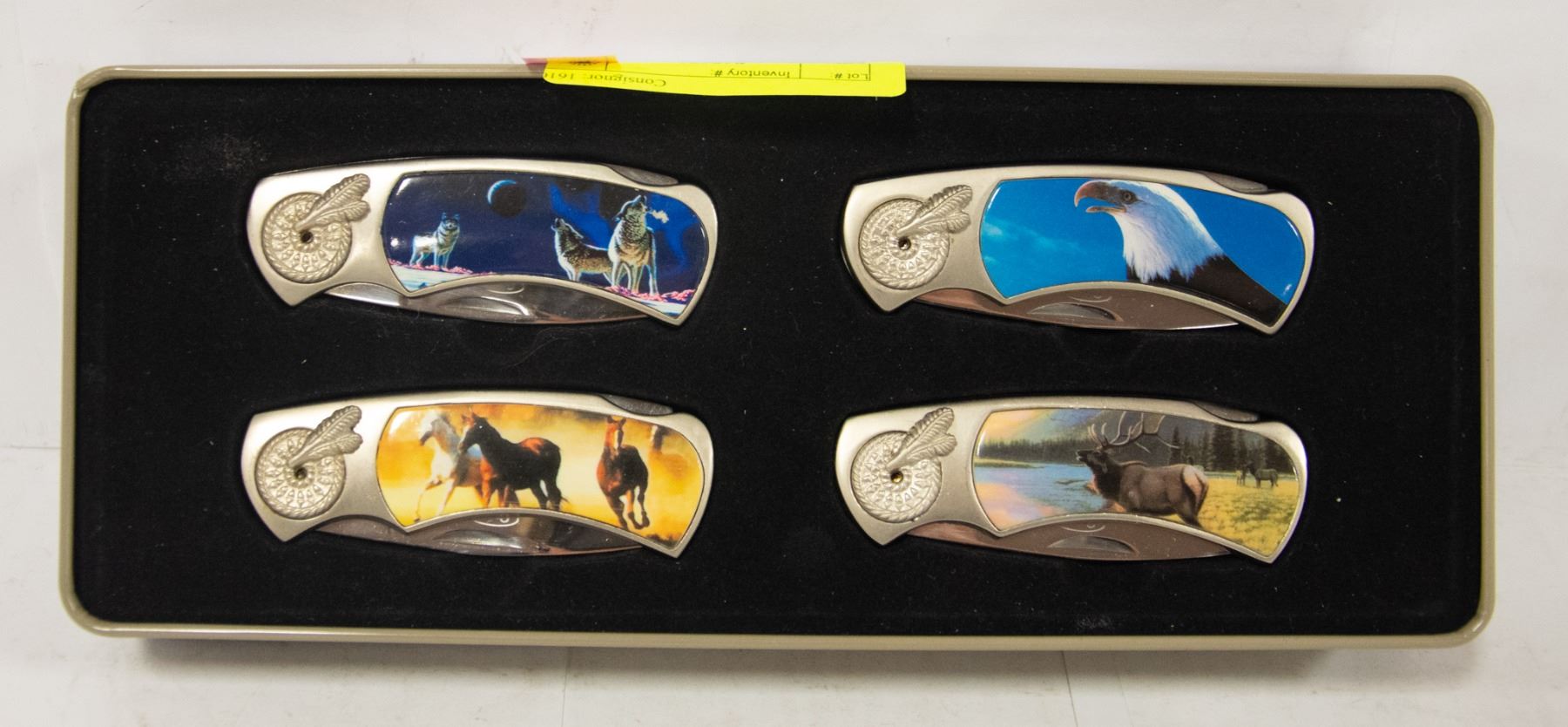COLLECTOR SET OF WILDLIFE FOLDING KNIVES IN CASE