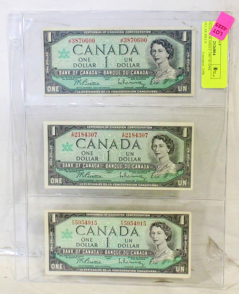 COLLECTOR SHEET 1967 $1 ONE DOLLAR BILLS
