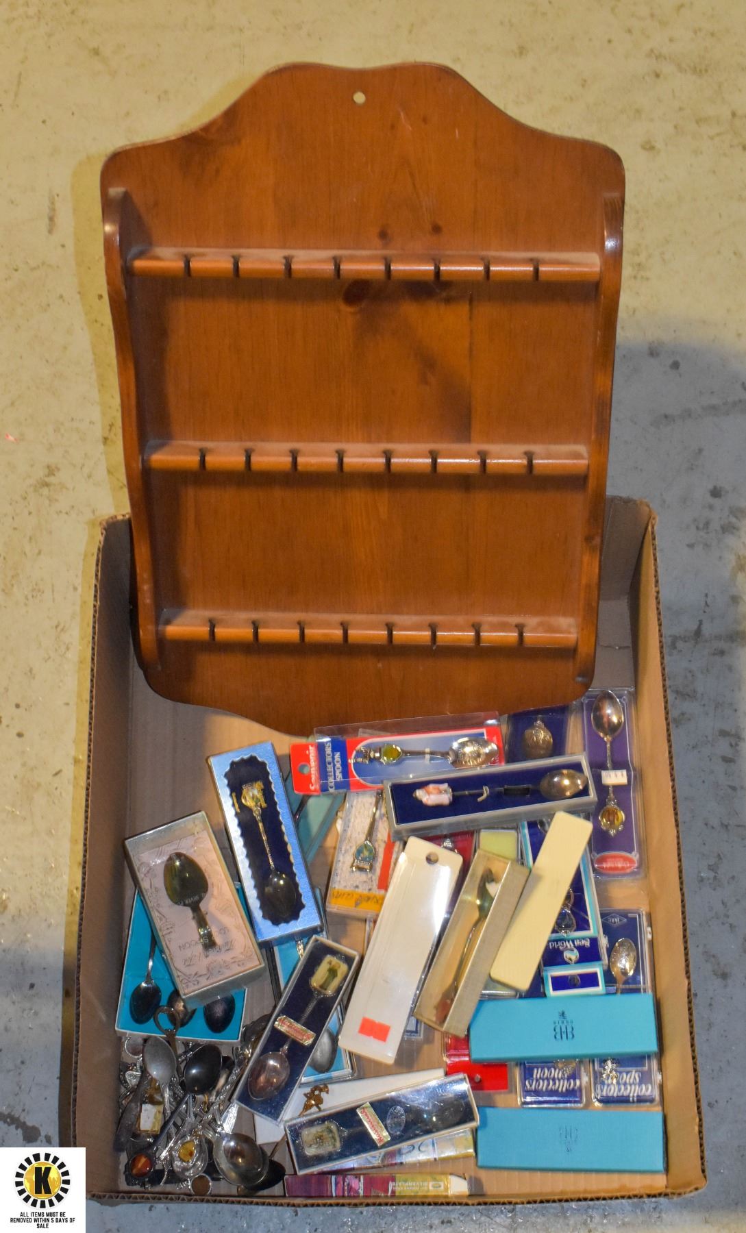 COLLECTOR SPOONS- ASSORTED LOT W/ WOOD WALL RACK