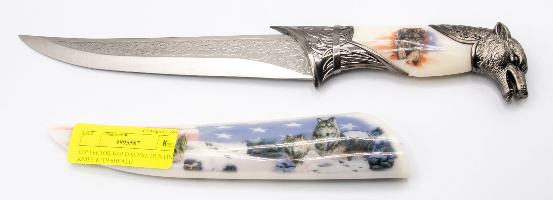 COLLECTOR WOLF SCENE HUNTING KNIFE WITH SHEATH