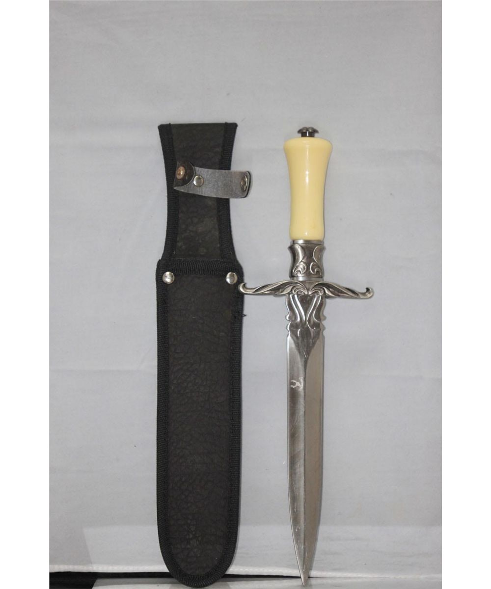 COLLECTORS EDITION 13" DAGGER DETAILED HANDLE GAURD **|**|** 13" OVERALL LENGTH 8" BLADE CARBON STEEL SHEATH INCLUDED ; MSRP: $0