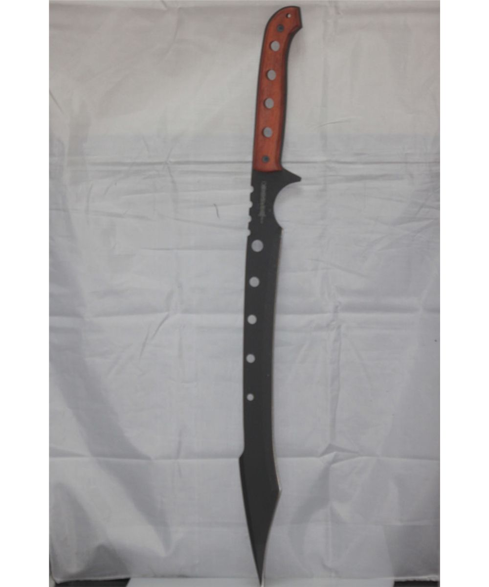 COLLECTORS EDITION 26" ROSEWOOD HANDLE MACHETE SWORD **|**|** OVERALL LENGTH 26" BLADE LENGTH 19" BLACK BLADE WOODEN HANDLE CARBON STEEL BLADE SHEATH INCLUDED ; MSRP: $0