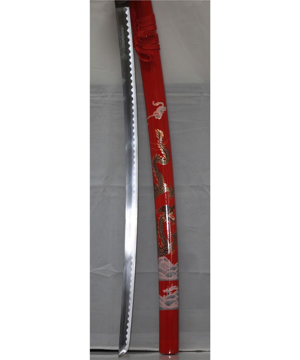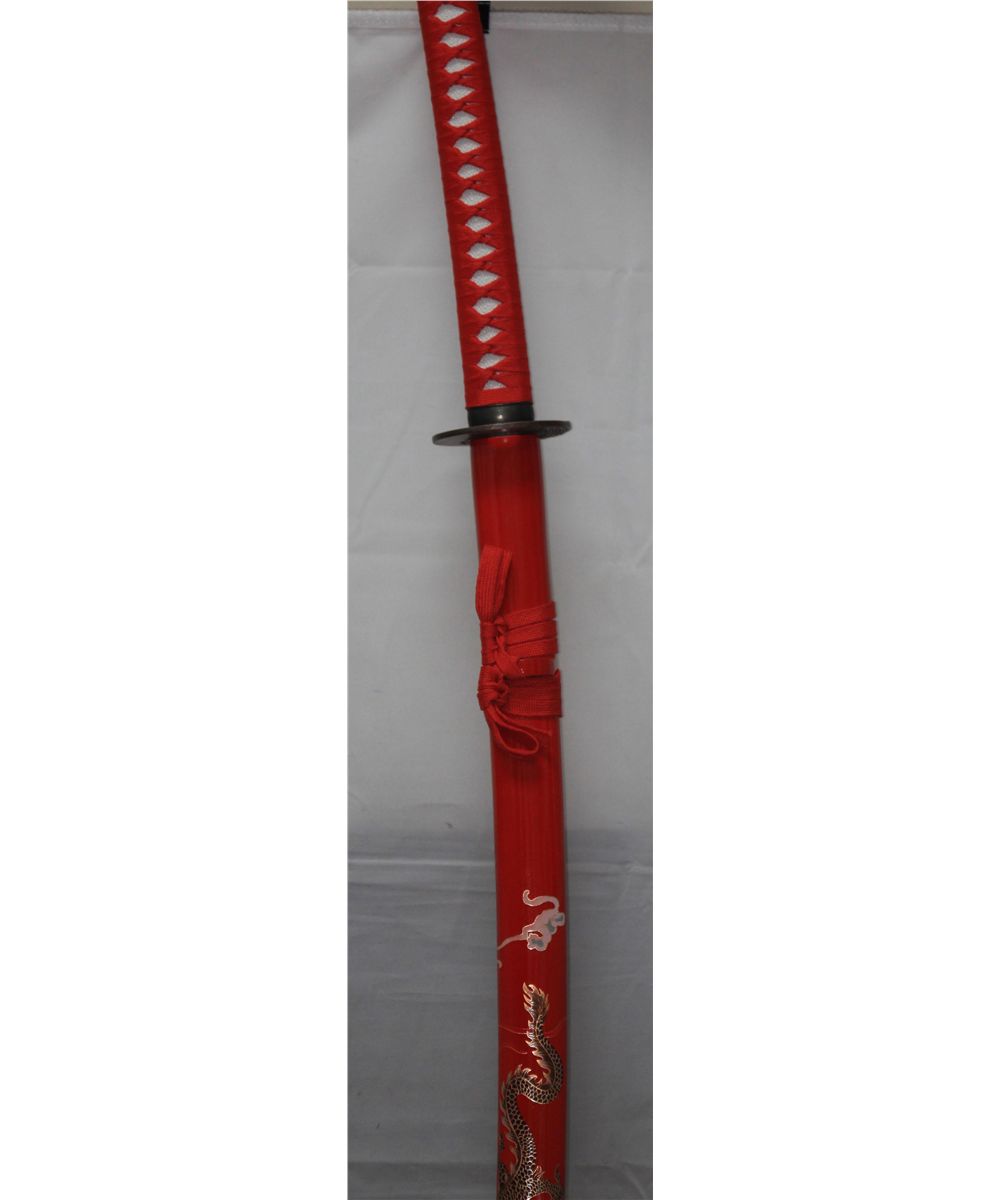 COLLECTORS EDITION 40.5" SKY BLUE CHINESE DRAGON KATANA **|**|** OVERALL LENGTH 40.5" BLADE LENGTH 26" HANDLE LENGTH 11" CARBON STEEL BLADE IMITATION RAY SKIN WRAPPED HANDLE SKY BLUE DRAGON DESIGN WOOD SHEATH ; MSRP: $0